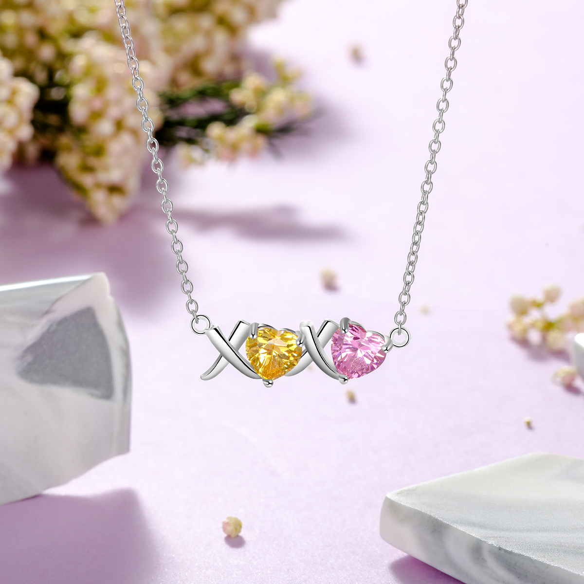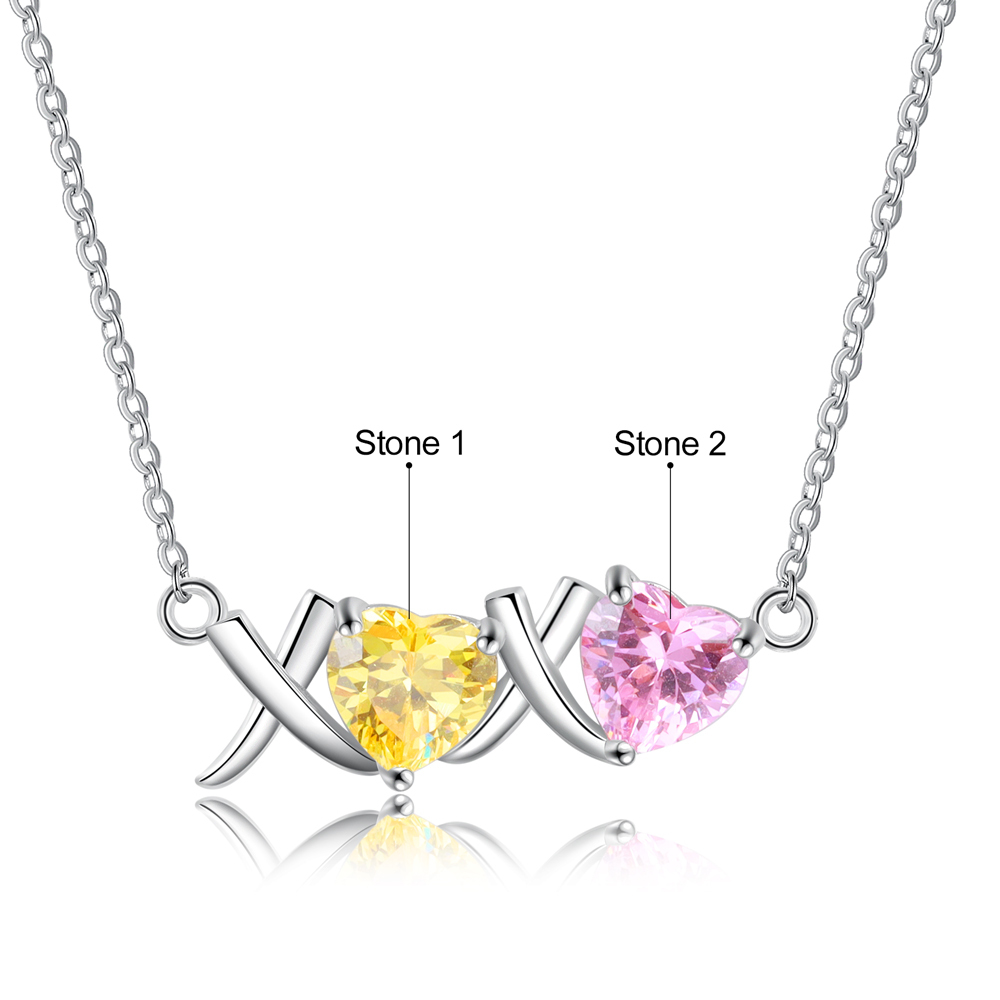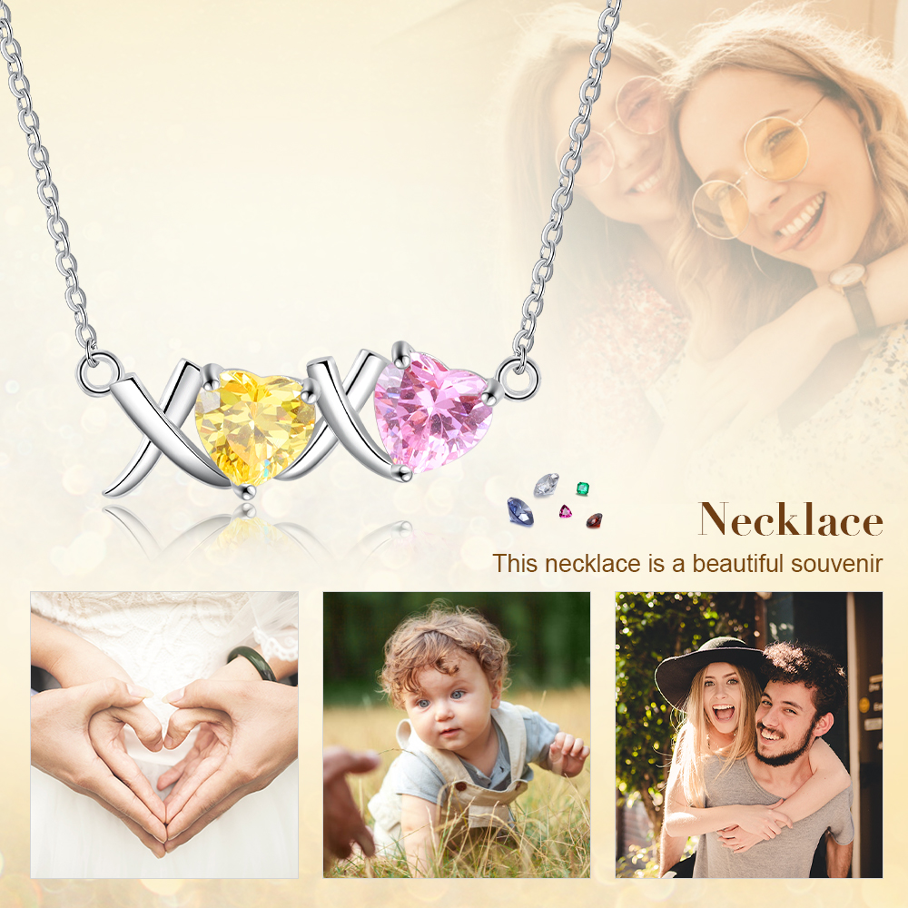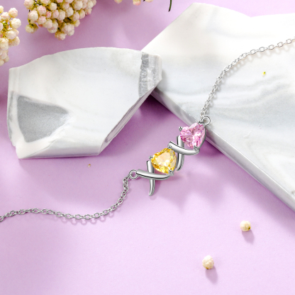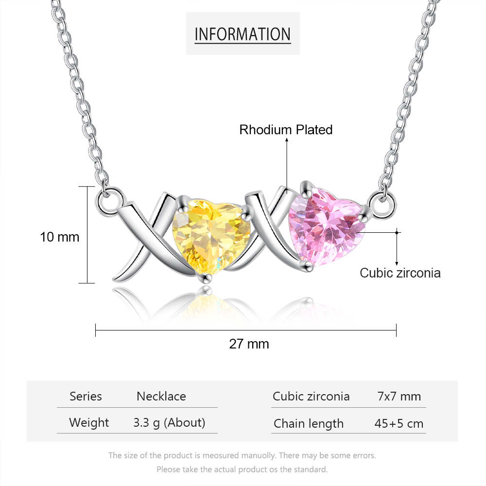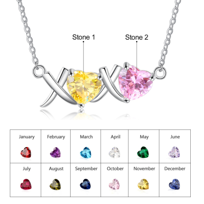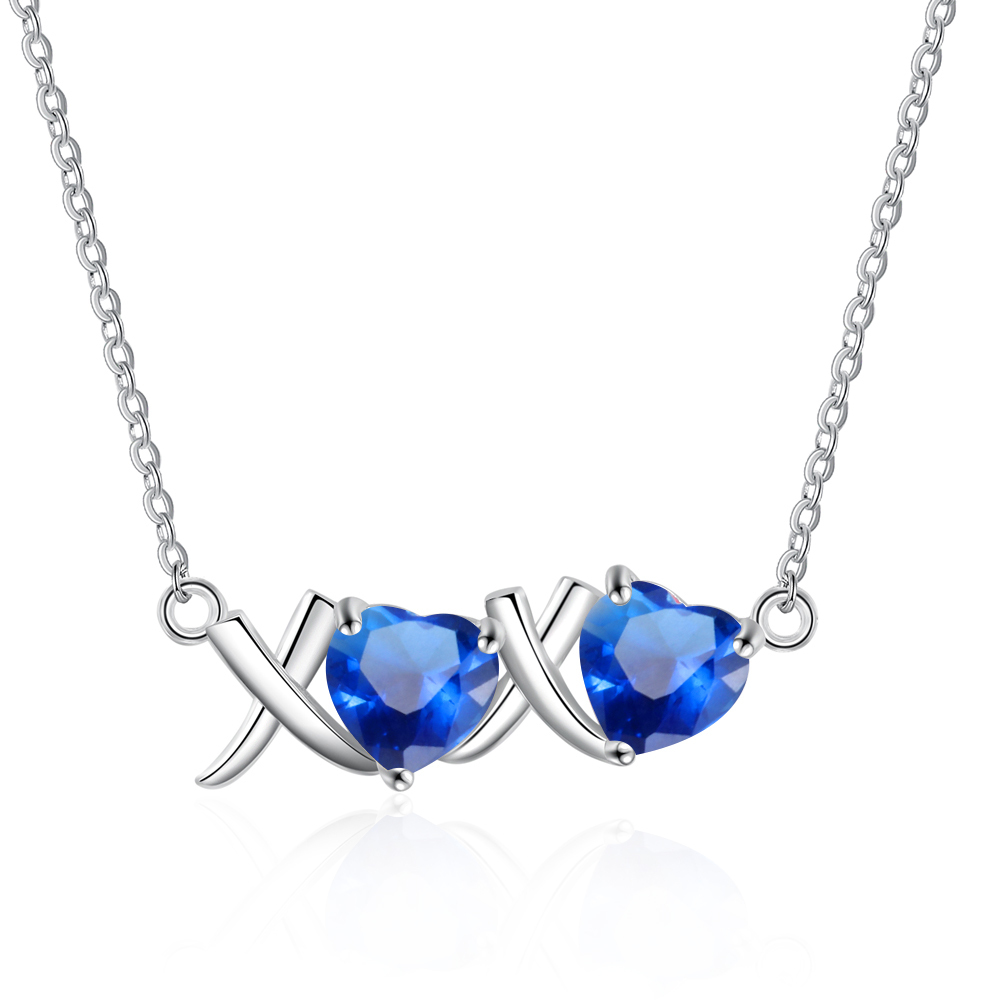 September Birthday Gift Personalized Necklace With 2 Heart Birthstones Engraved Names Gift For Her