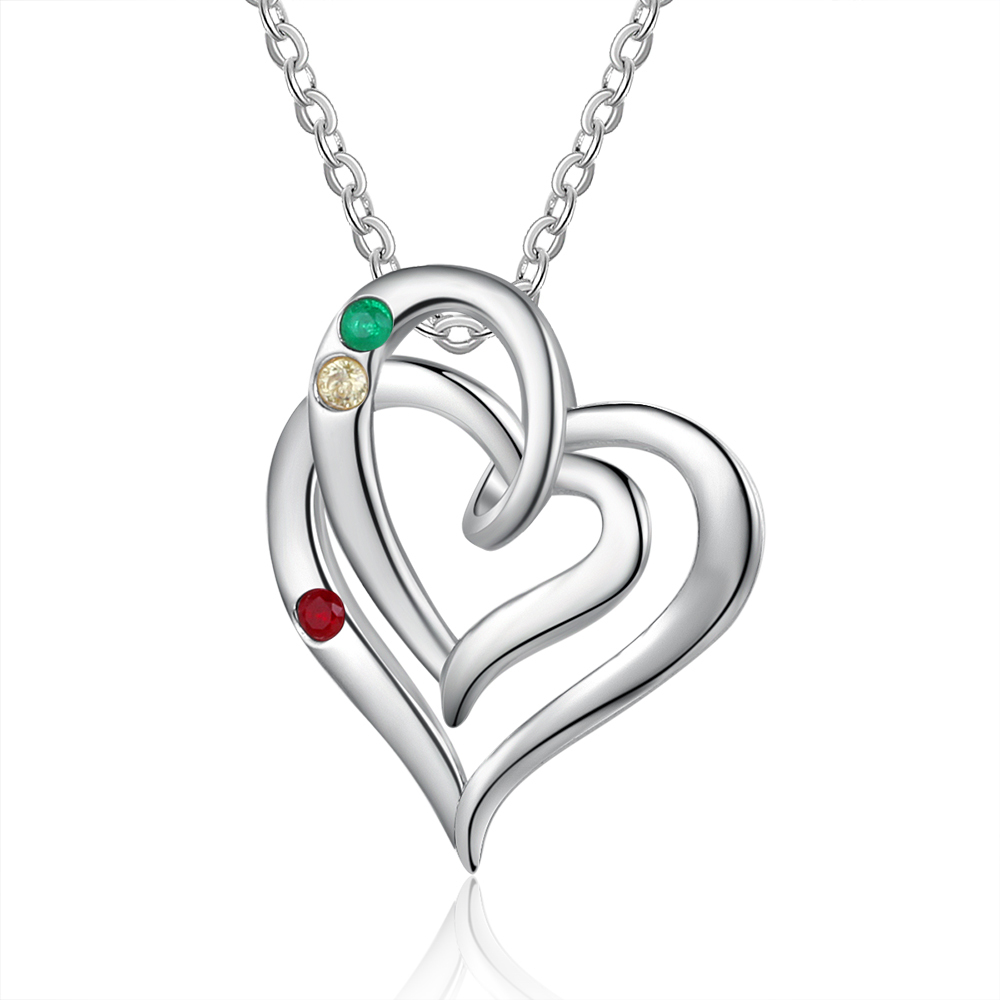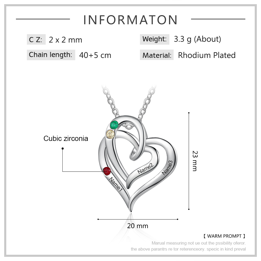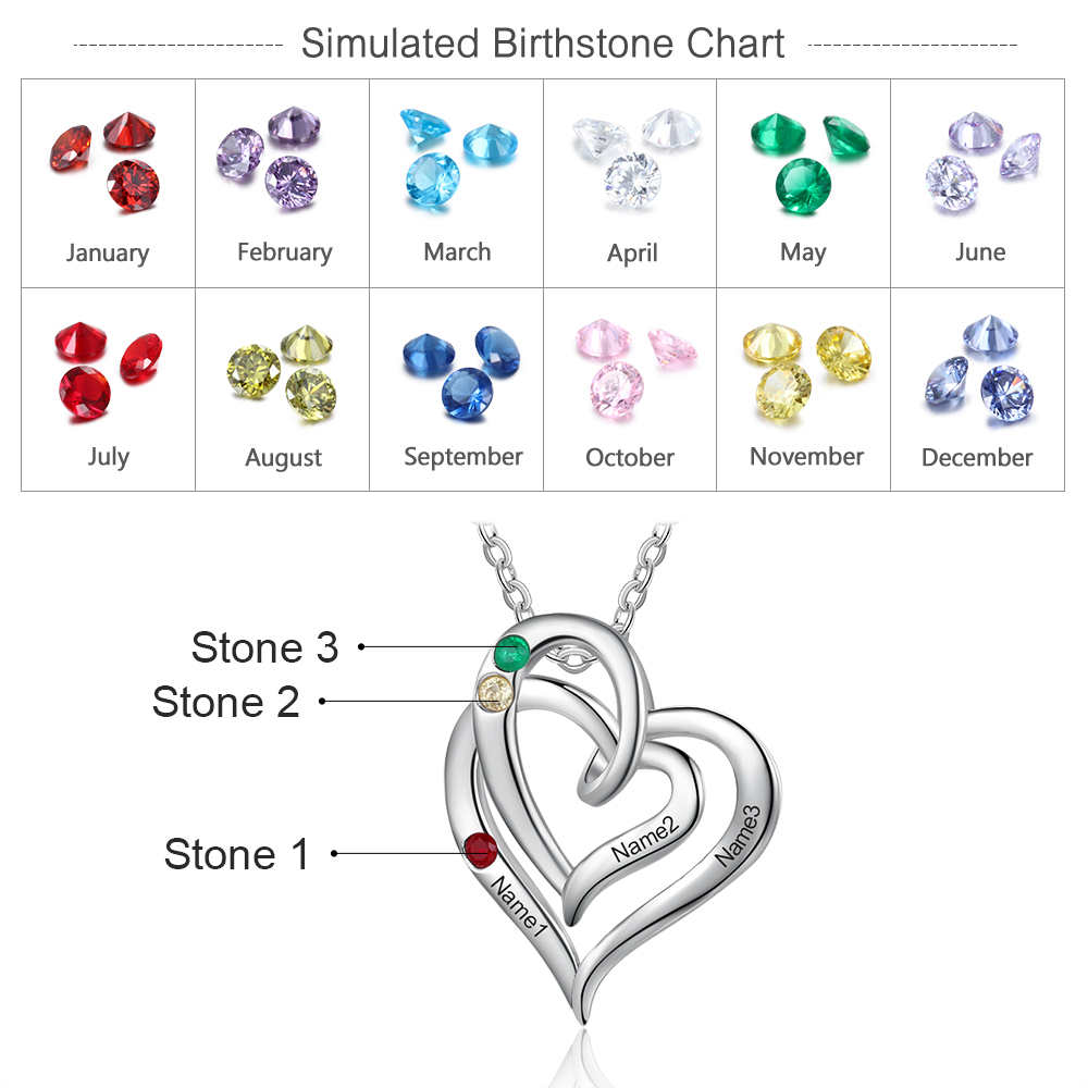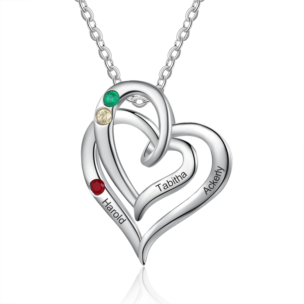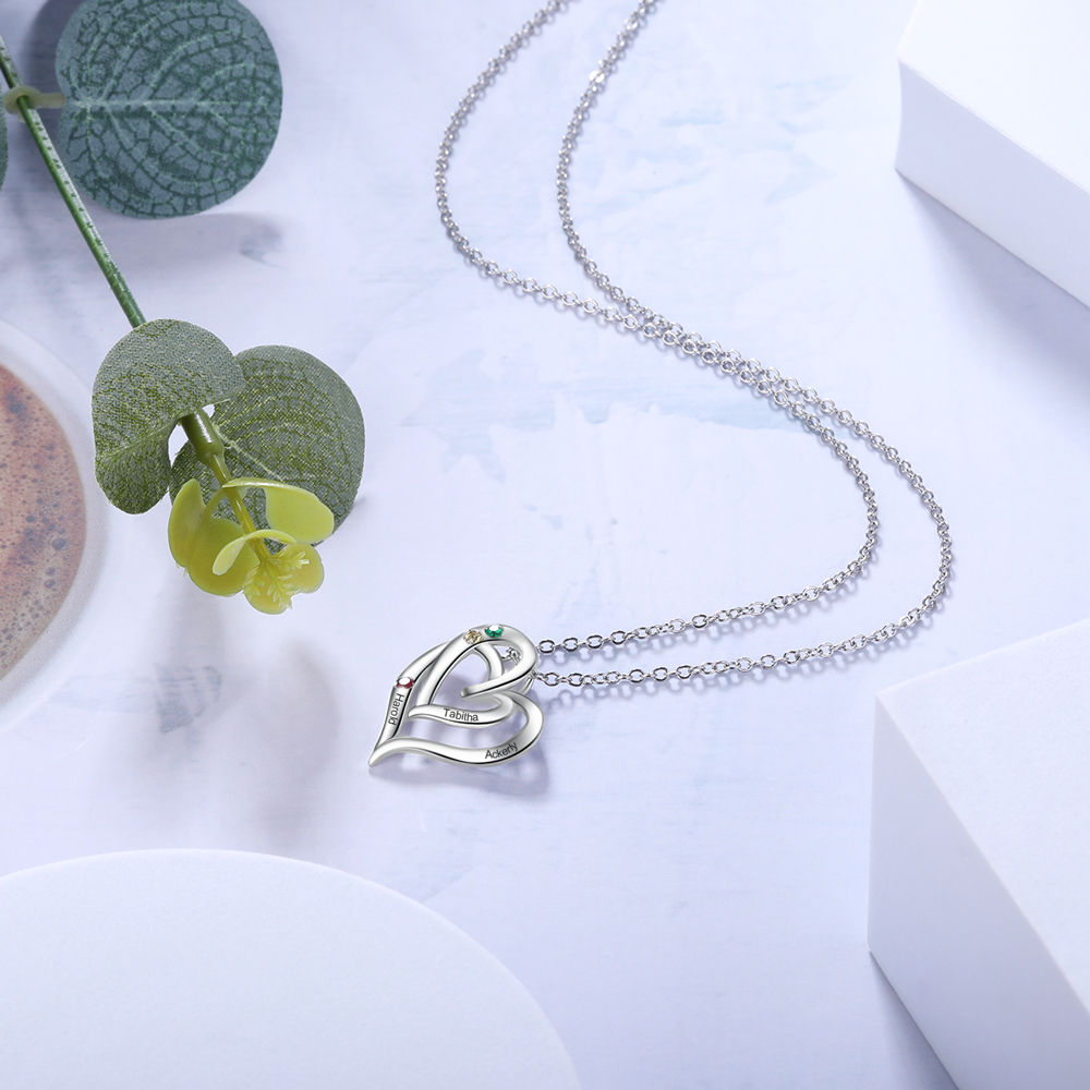Personalized Heart Necklace With 2 Birthstones Engraved Names Gift For Her
