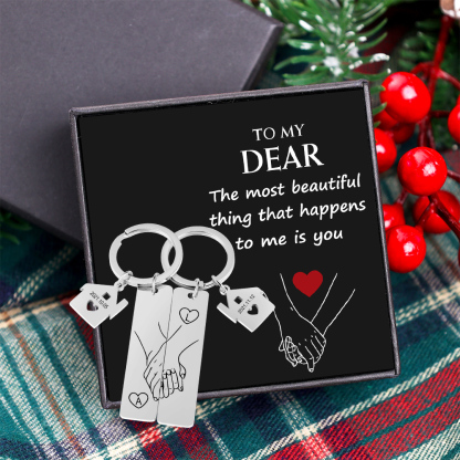 Holding Hands Couple Keychain Set Personalized Date Initial Matching Couple Gifts Set With Gift Box Gift Card