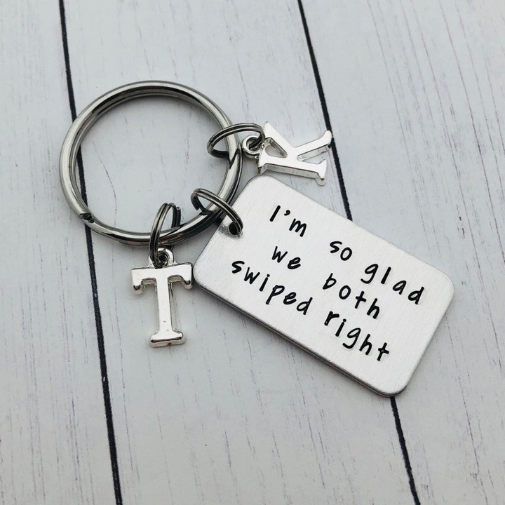 I'm so glad we both swiped right, Valentines Day Gifts Personalized Keychain For Him or Her