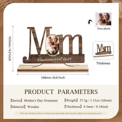 Irregular Shape Frame Personalized Photo Wooden Ornament Custom Text Home Decoration for Mom