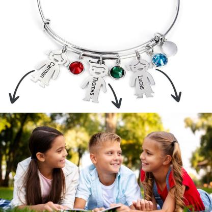 Personalized Kids Charm Bracelet With 4 Birthstones Engraved Names Bracelet Gift For Women