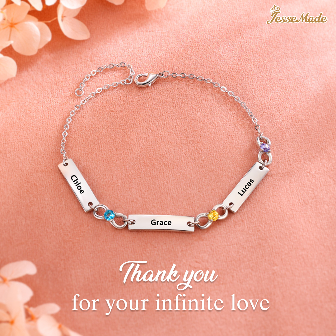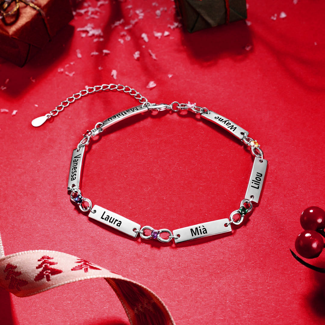 Personalized Infinity Bracelet With 6 Birthstone Engraved Names Bracelet Gift For Women