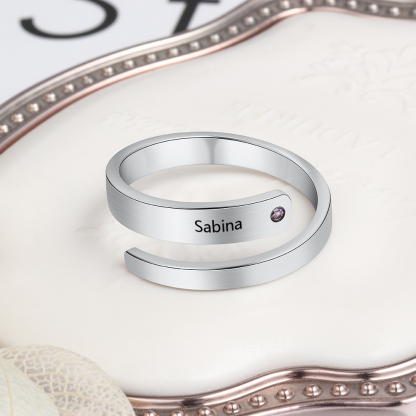 Personalized Ring With 1 Birthstone Engraved Names Ring Gift For Women