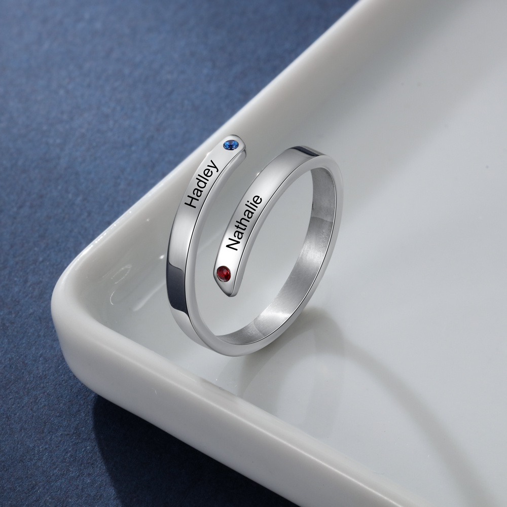 Personalized Mother Ring With 2 Birthstones Engraved Names Ring Gift For Women