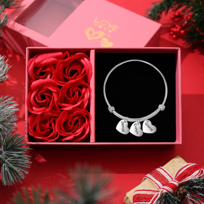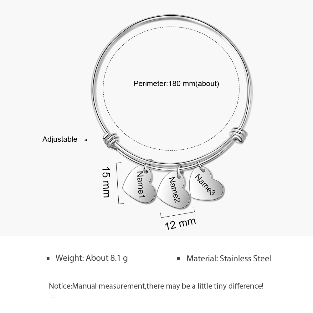 3 Names-Personalized Woman Adjustable Hearts Name Bracelet-Custom 3 Names Bracelet For Her