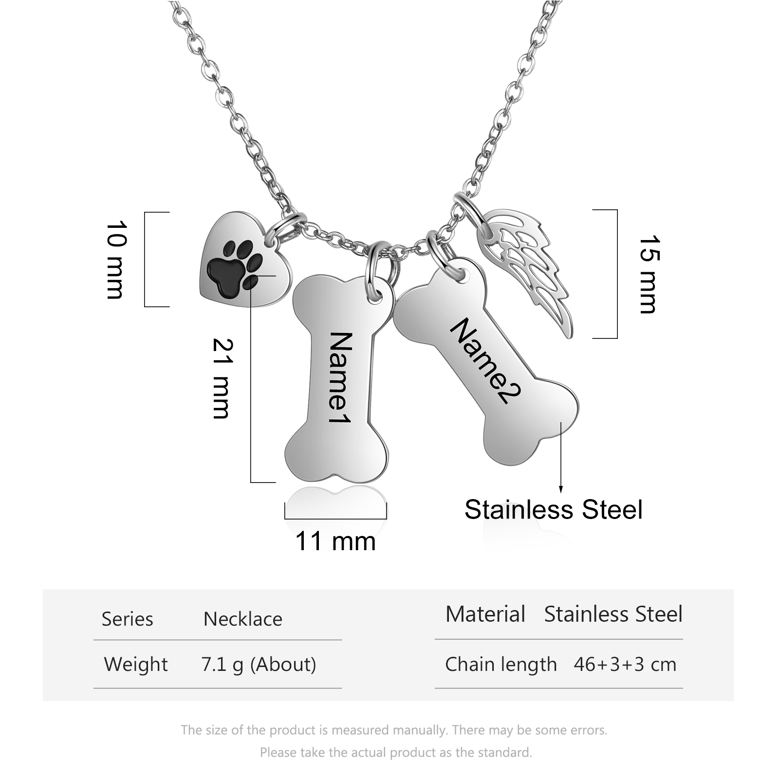 Jessemade Personalized Dog Bone 2 Names Necklace