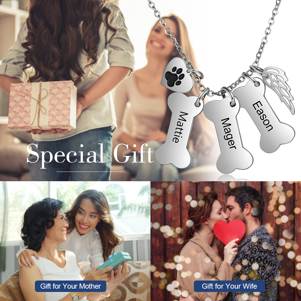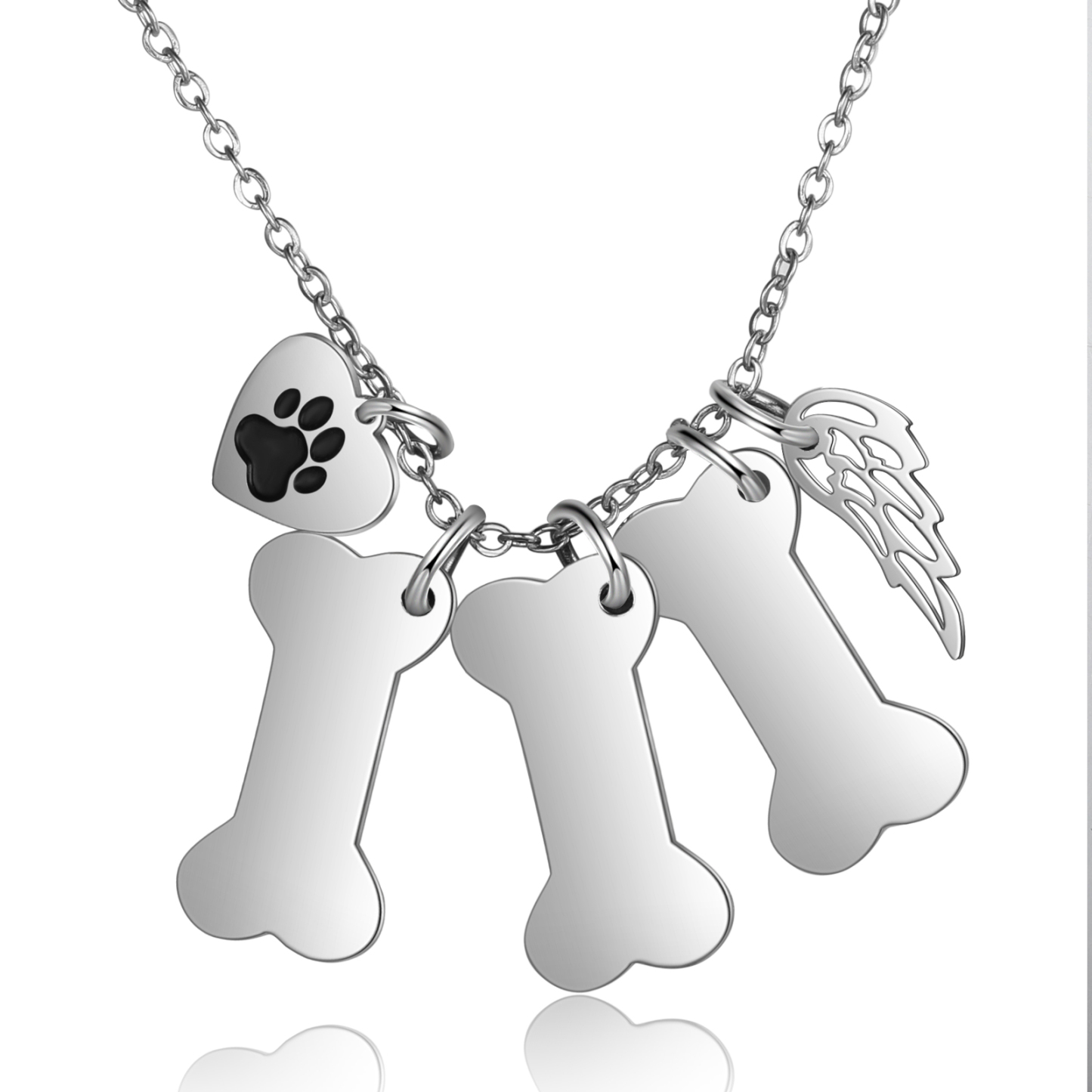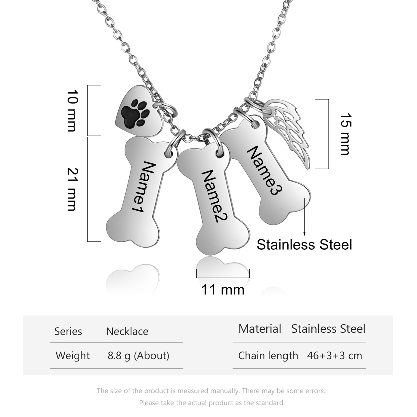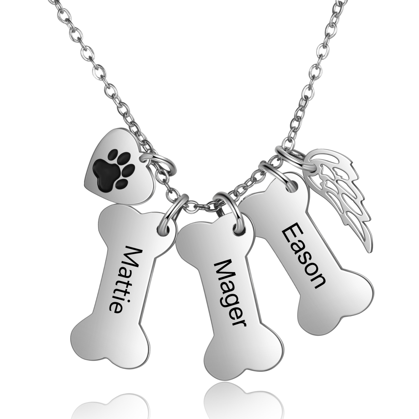 Jessemade Personalized Dog Bone 3 Names Necklace