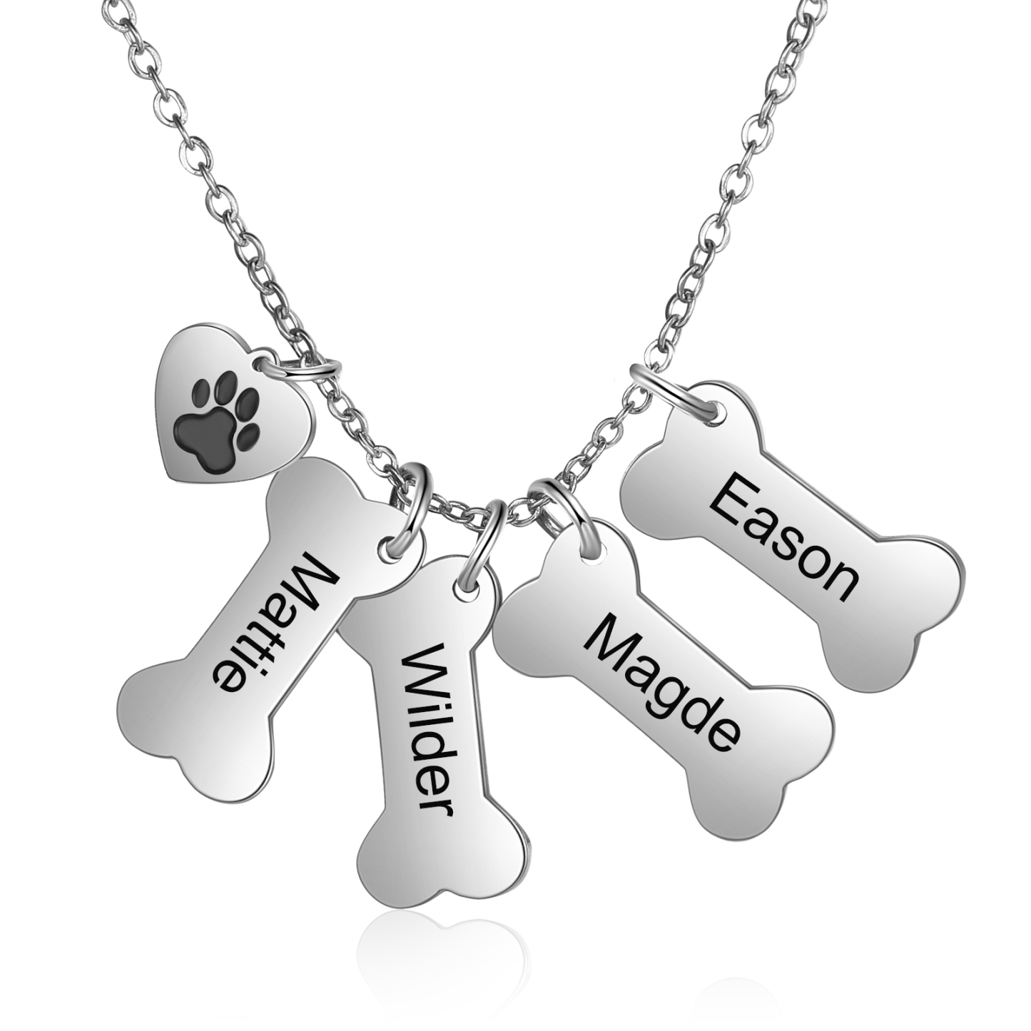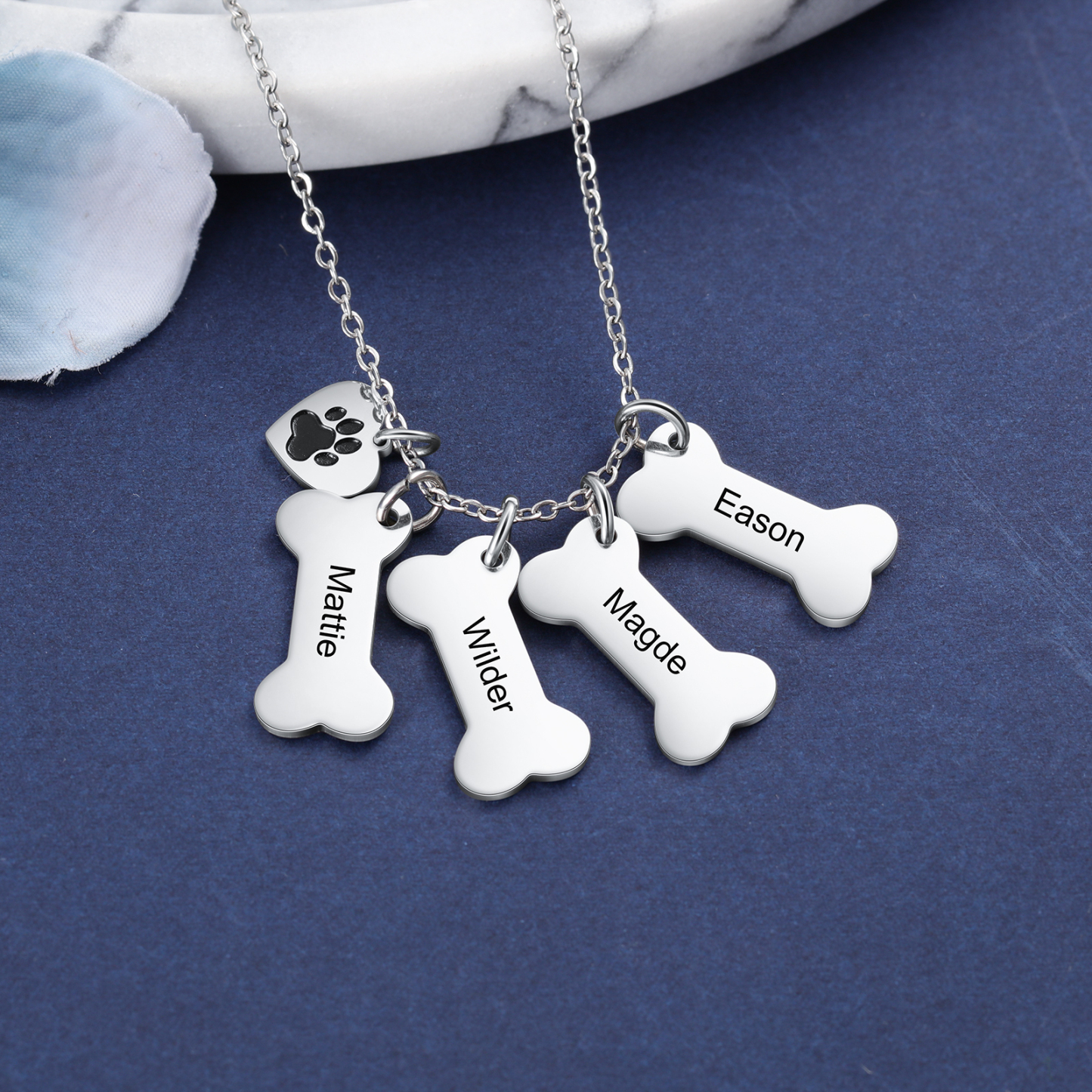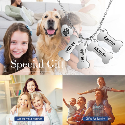 Jessemade Personalized Dog Bone 4 Names Necklace
