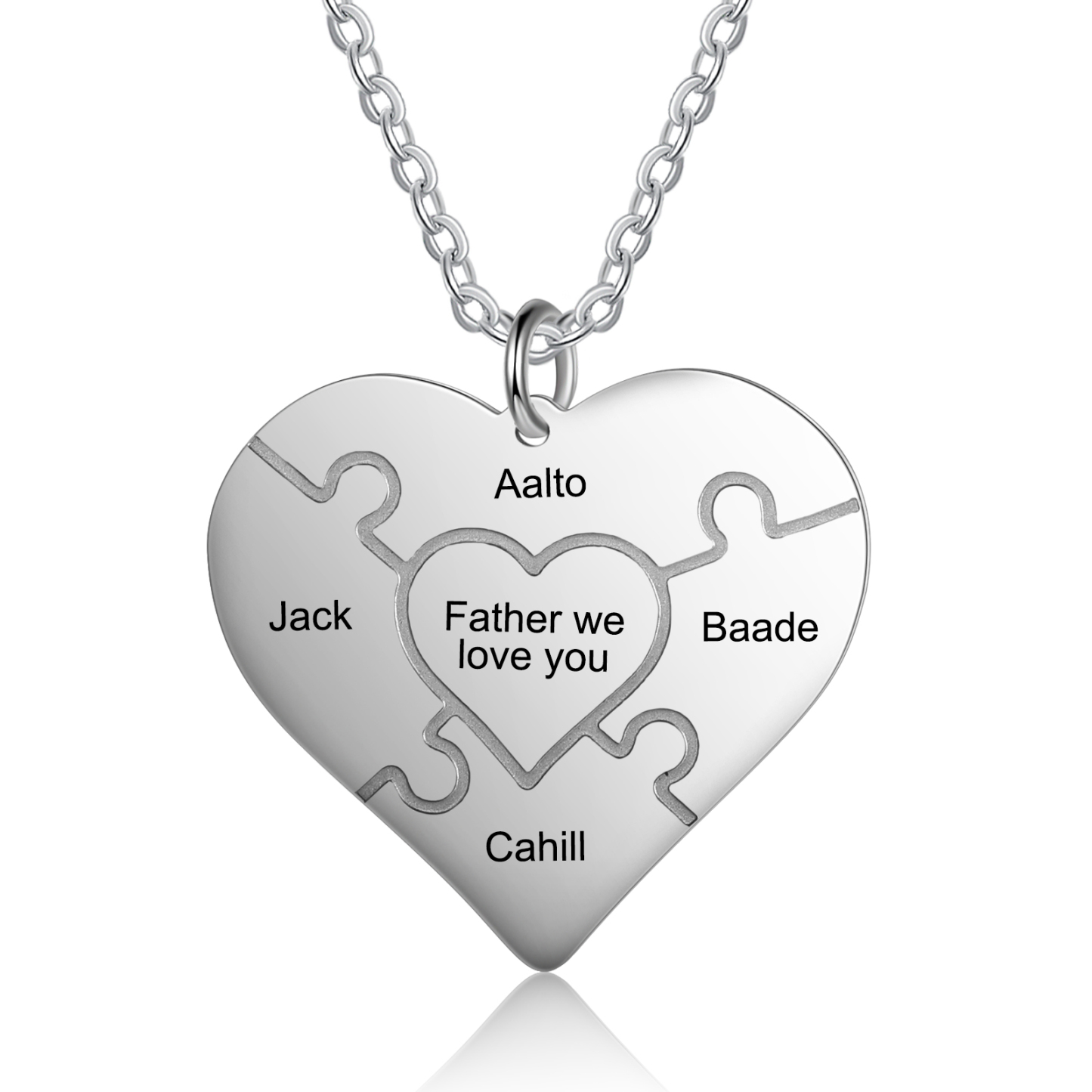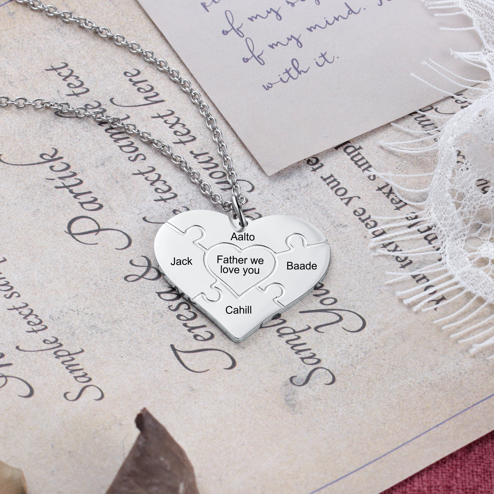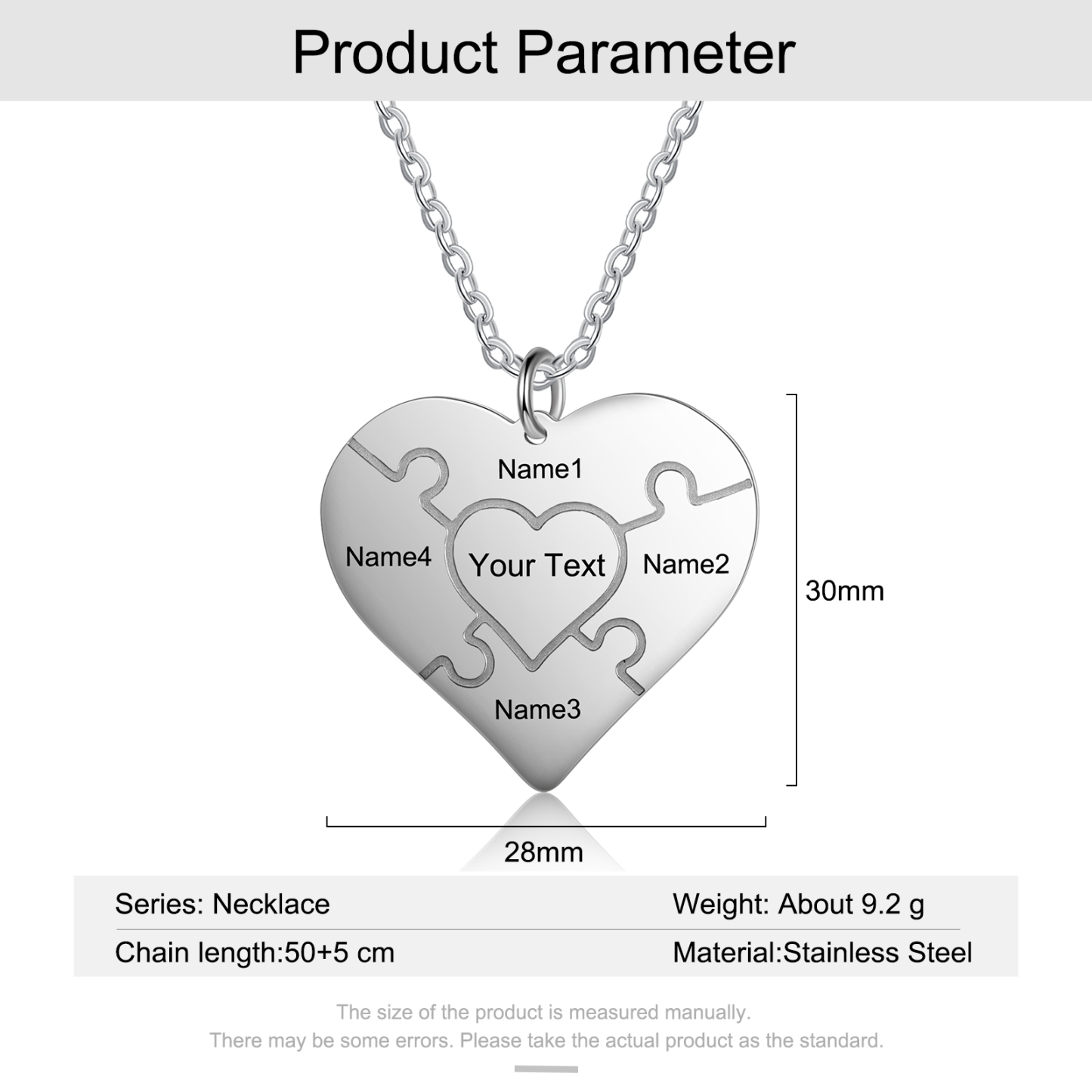 Jessemade Personalized Heart Puzzle Necklace Engraving 4 Names