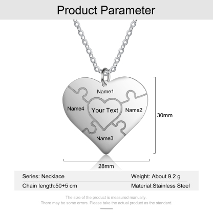 This necklace symbolizes a complete family composed of all family members. You can set a personalized name for the puzzle representing each family member, making it a unique necklace for your family.