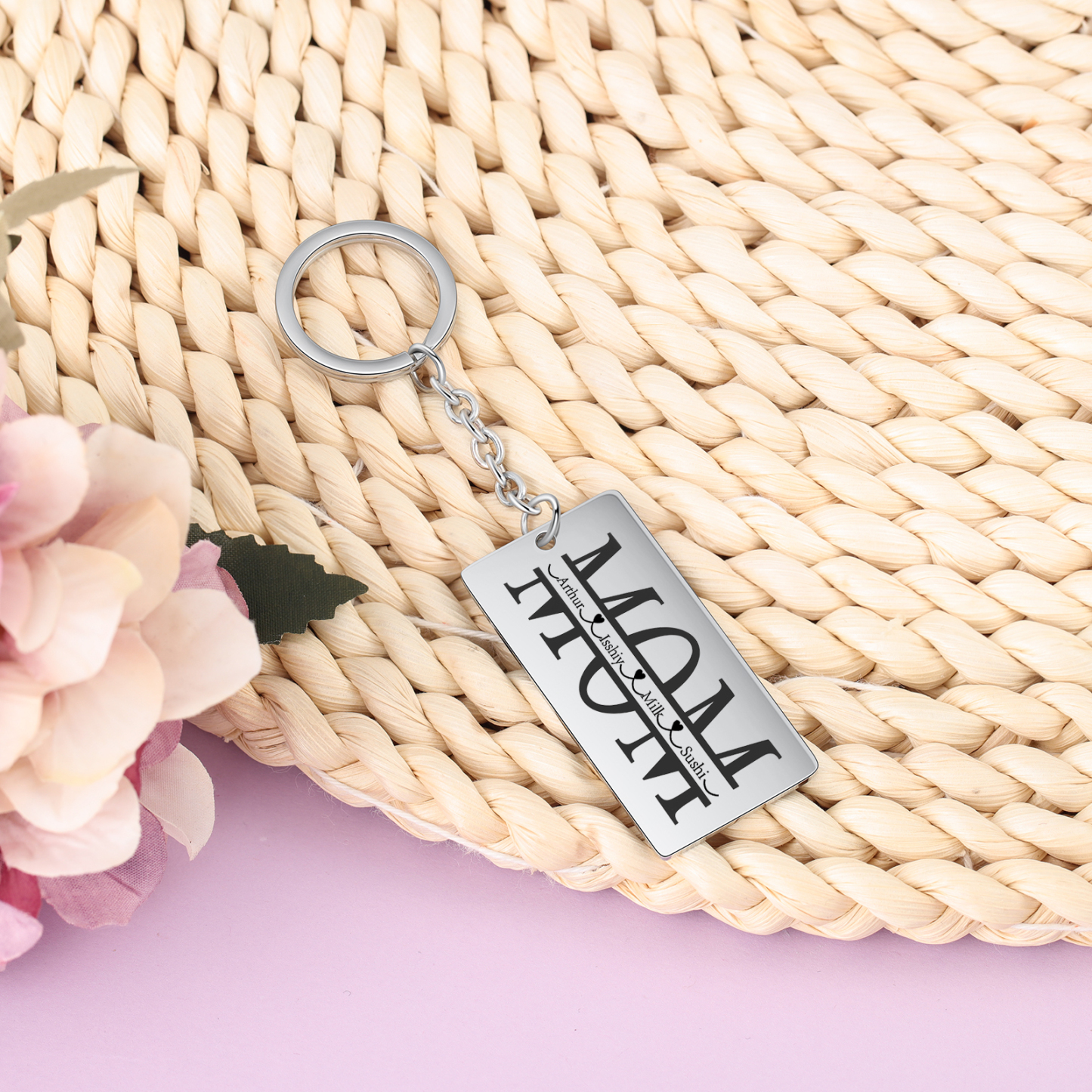 Personalized Keychain Engraved 4 Names Keychain Gifts For Mom