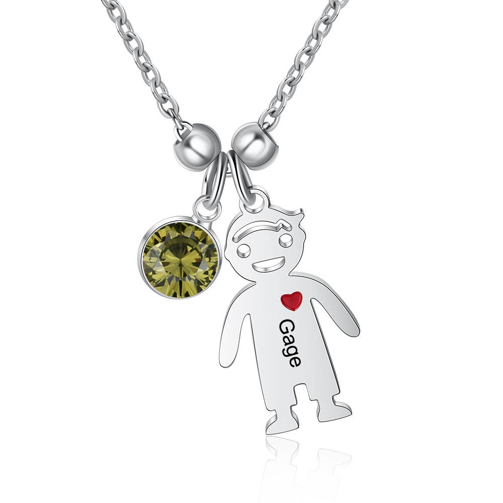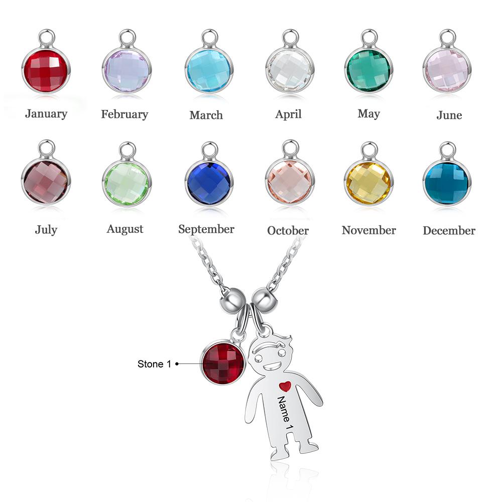 Personalized Kids Charm Necklace With 1 Birthstone Engraved Names Peridot Jewelry Gift For Mother