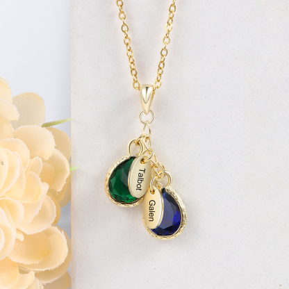 Personalized Leaf Necklace With 2 Birthstones Engraved Names Gift For Mother