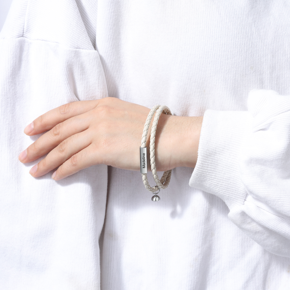 Leather Couple Magnetic Bracelet Personalized Names and Date Bracelet Set