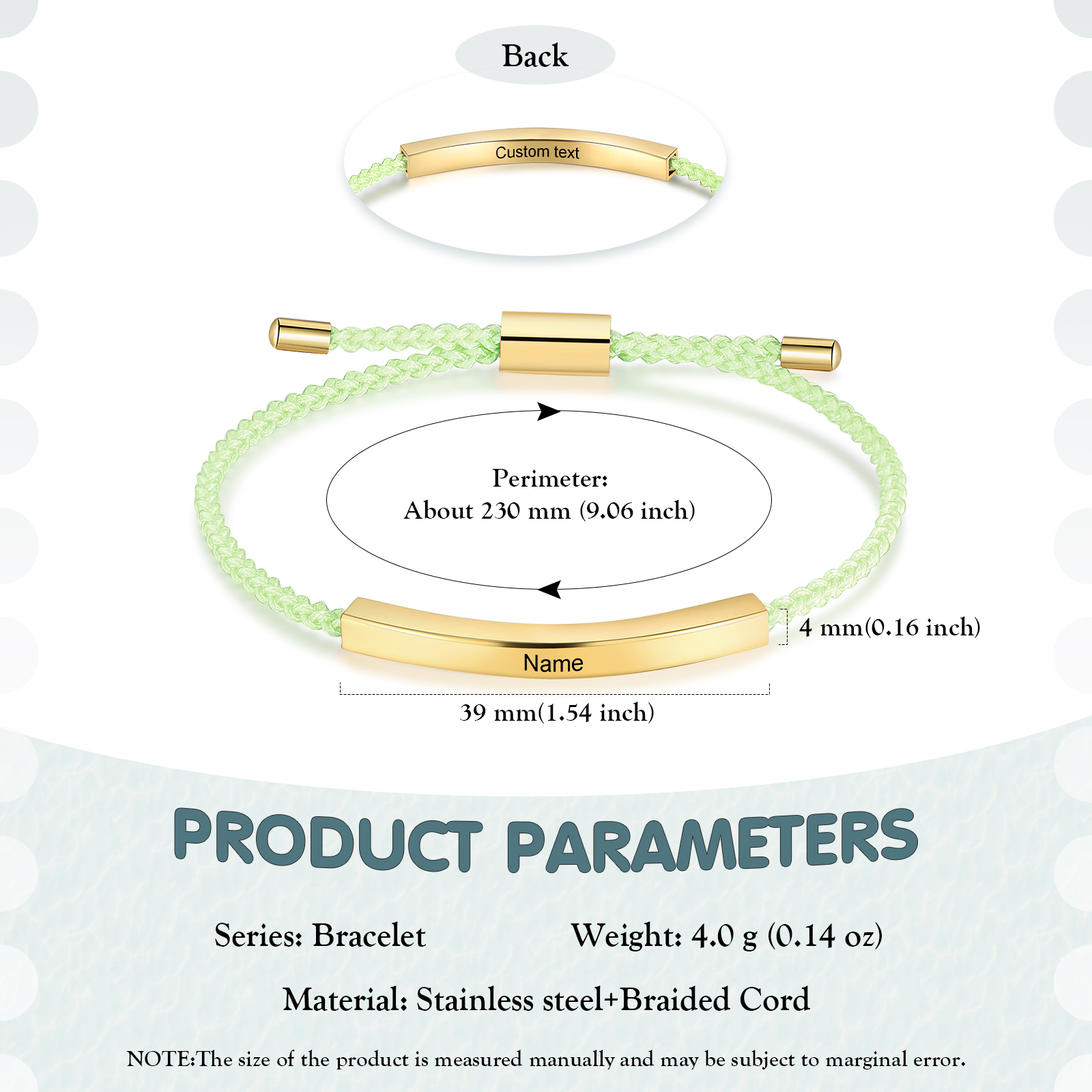 Light Green+Gold-Personalized Stainless Steel Adjustable Bracelet, Custom Name Braided Bracelet for Her/Him