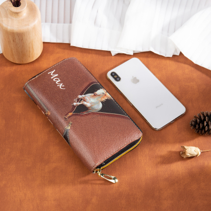 Long Purse Personalized Horse Leather Wallet Engraved 4 Photos Zip Wallet Gifts for Her