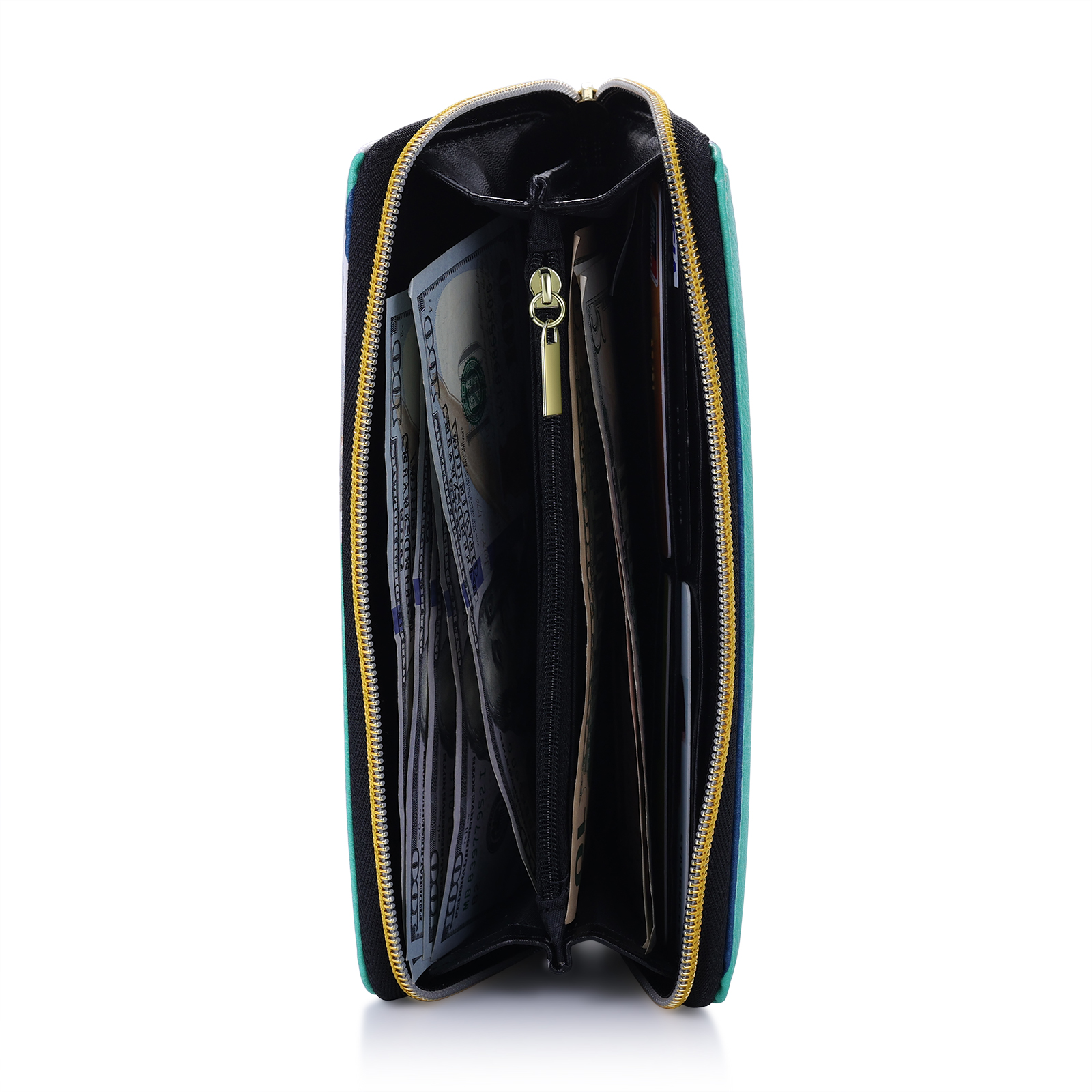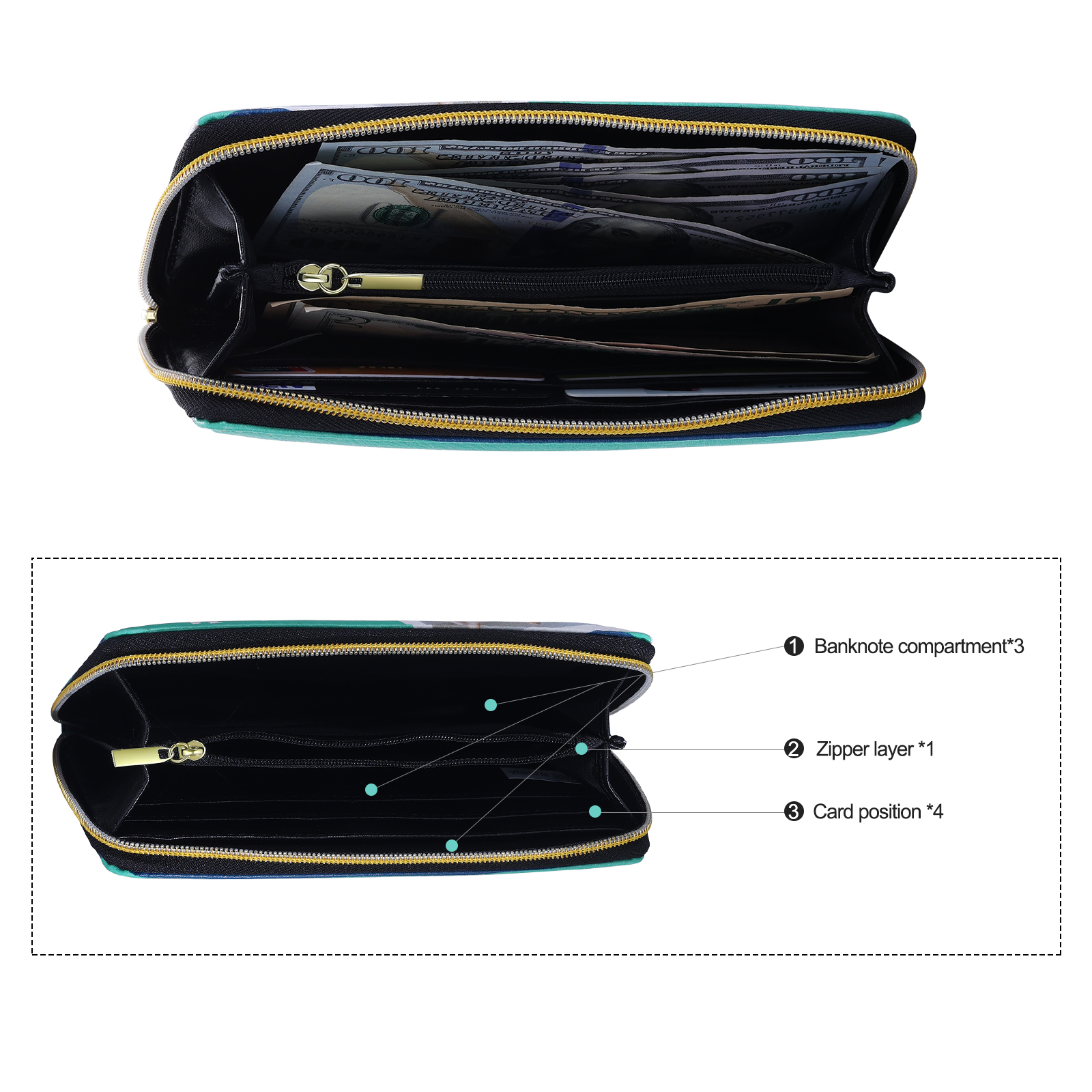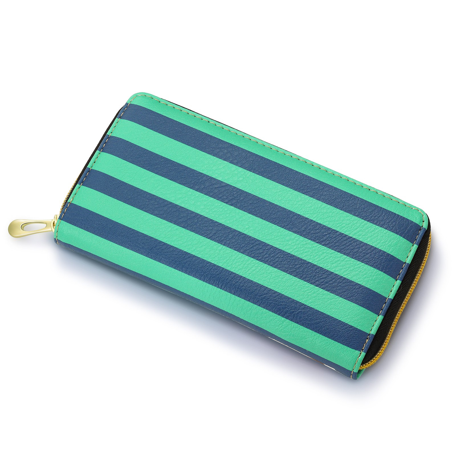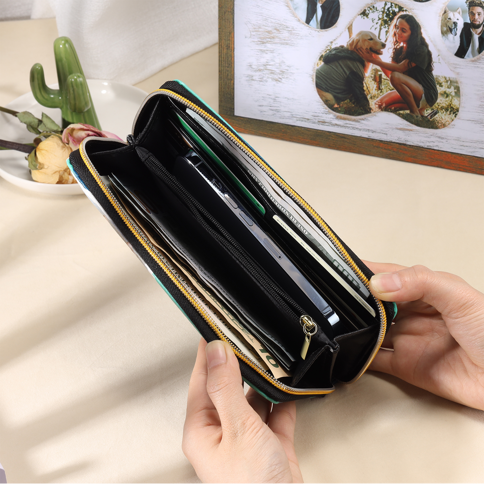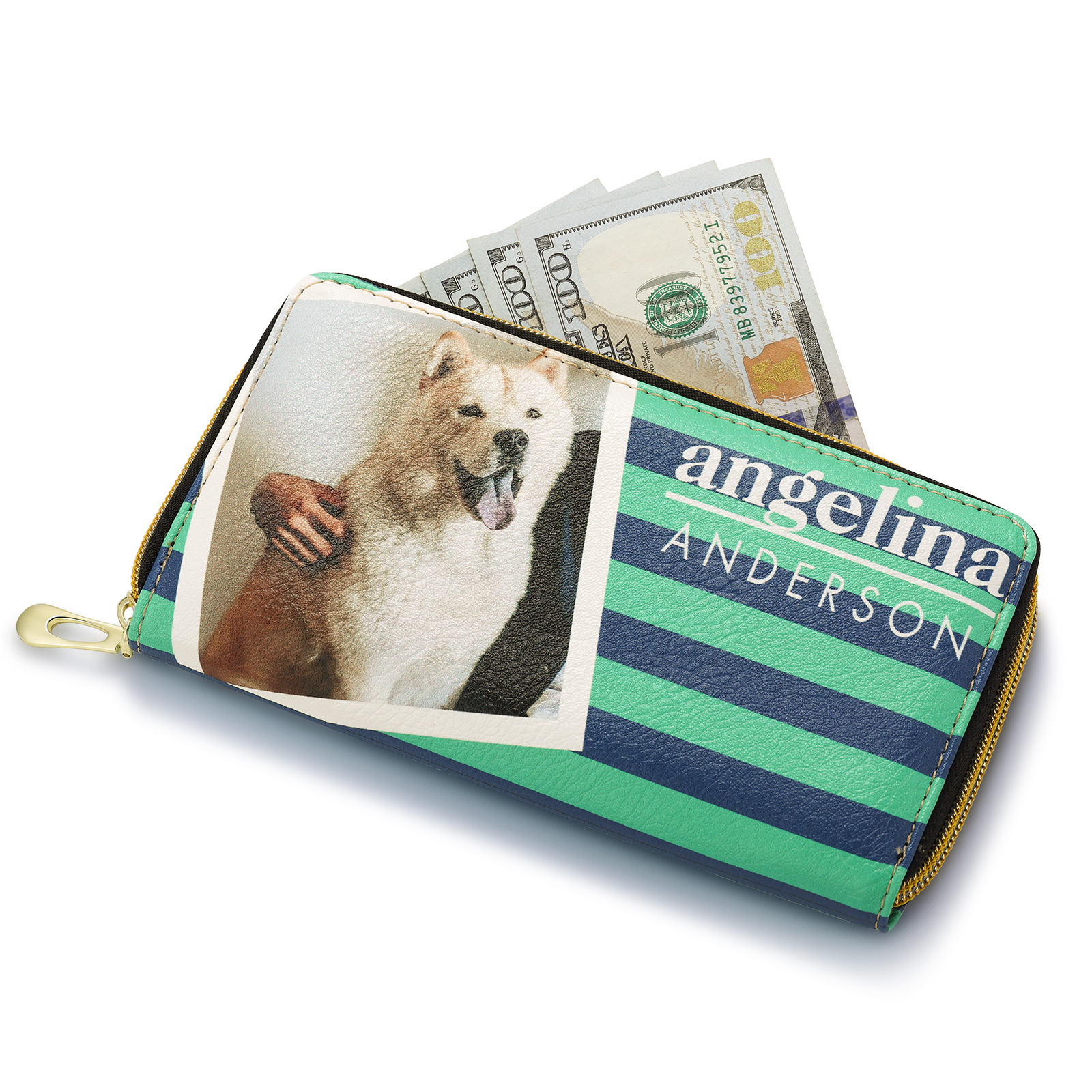 Long Purse Personalized Stripe Leather Wallet Engraved 1 Photo Zip Wallet Gifts for Her