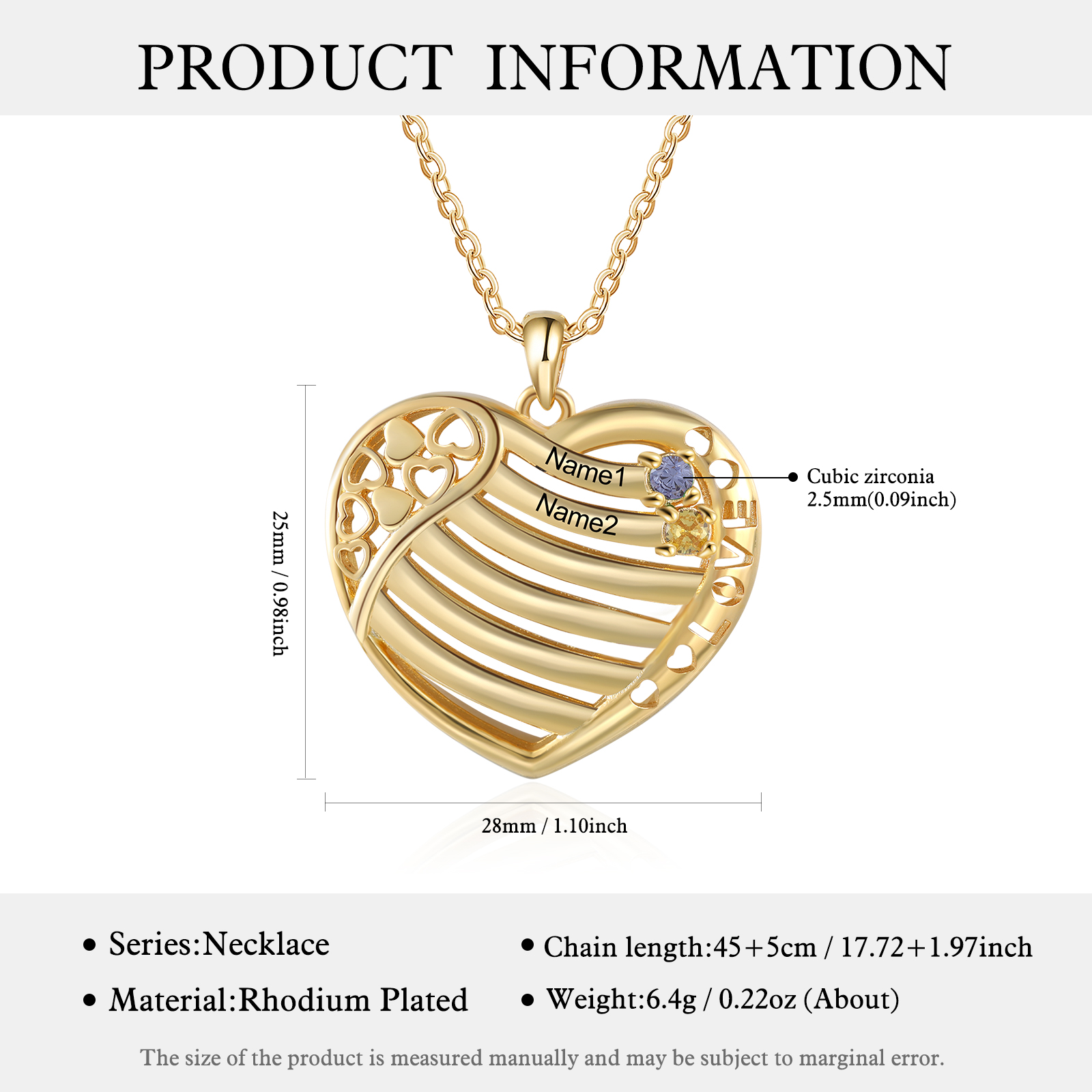 LOVE Heart Necklace Custom 2 Names & Birthstones Family Necklace Gifts For Her