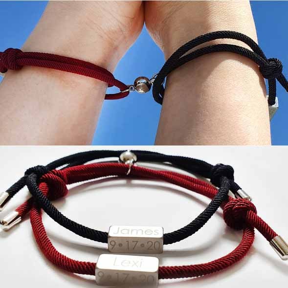 Couple Magnetic Bracelet, the custom bracelets can be engraved with your name and his/her name, as well as the name of your common pet, making your bracelet unique. In addition, each bracelet also has a hemispherical magnet. When the two bracelets meet, they will attract each other and it is difficult to separate, just like you are in love.