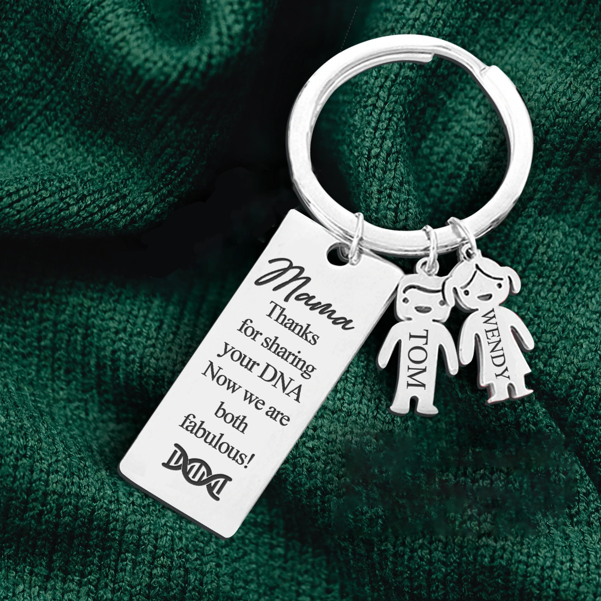 Mama Keychain Gifts Personalized Keychain With 2 Kid Charms "Thanks for Sharing Your DNA" For Her