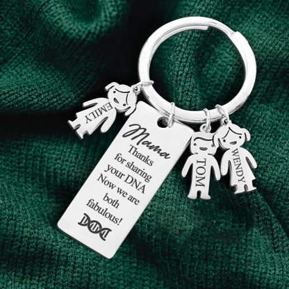 Mama Keychain Gifts Personalized Keychain With 3 Kid Charms "Thanks for Sharing Your DNA" For Her