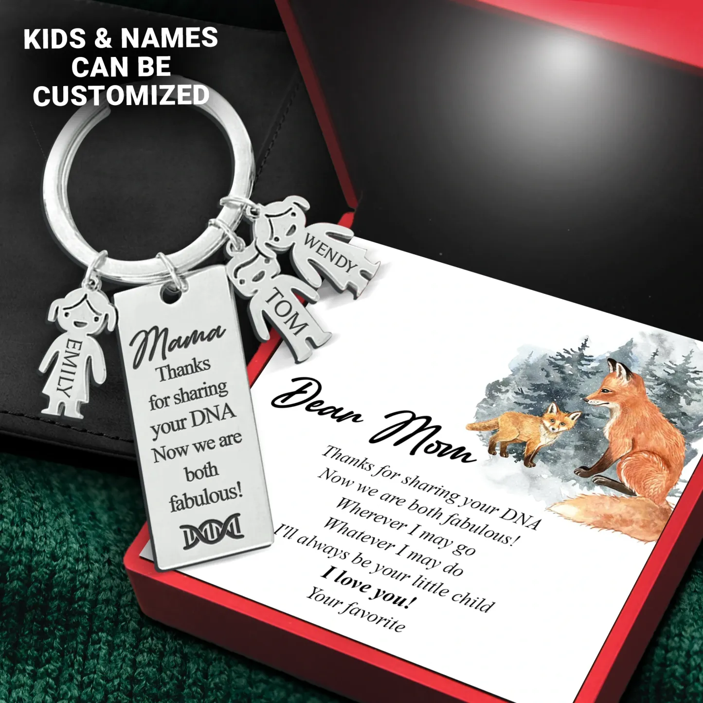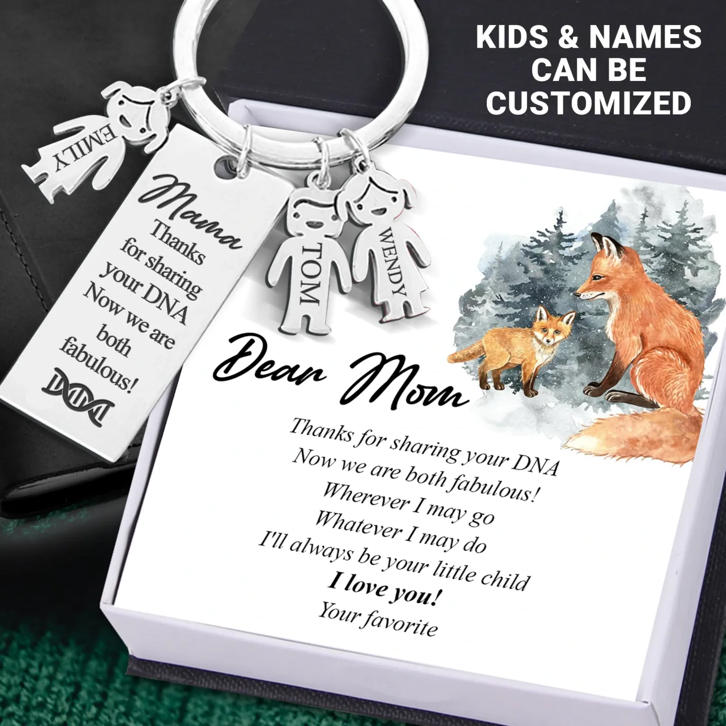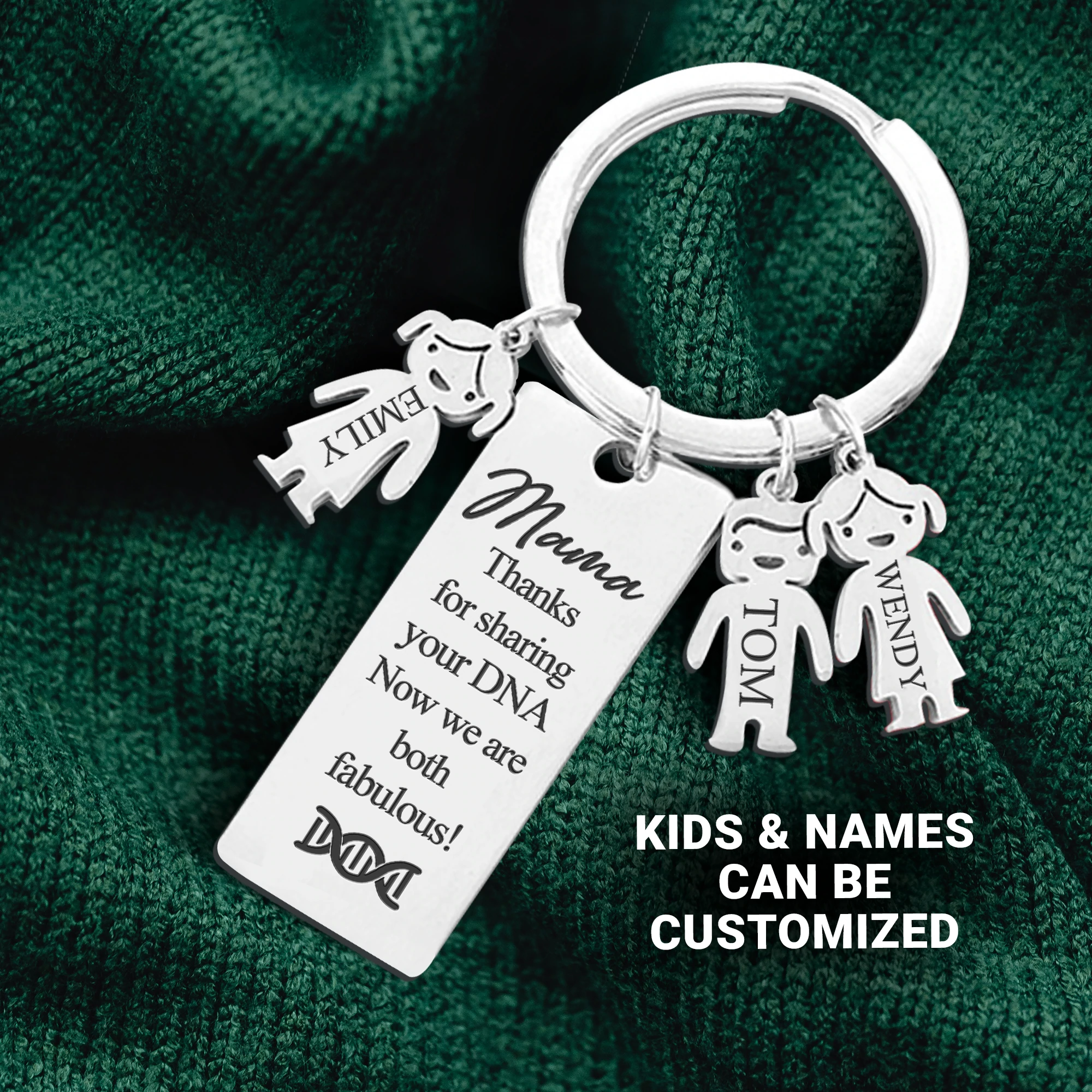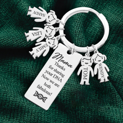 Mama Keychain Gifts Personalized Keychain With 5 Kid Charms "Thanks for Sharing Your DNA" For Her
