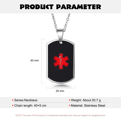 - Product Type: Customized Men's Necklace, Disease Markers,Medical Identity Jewelry