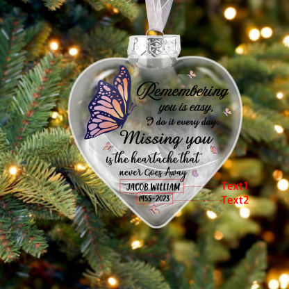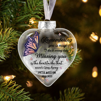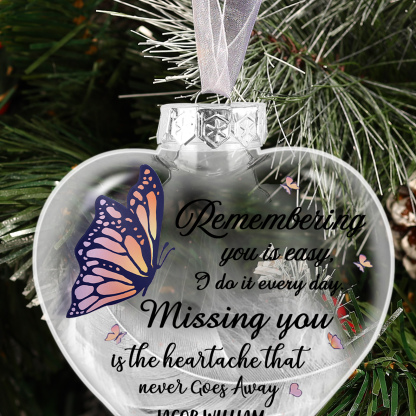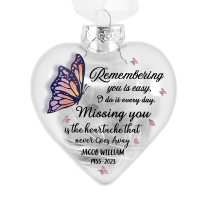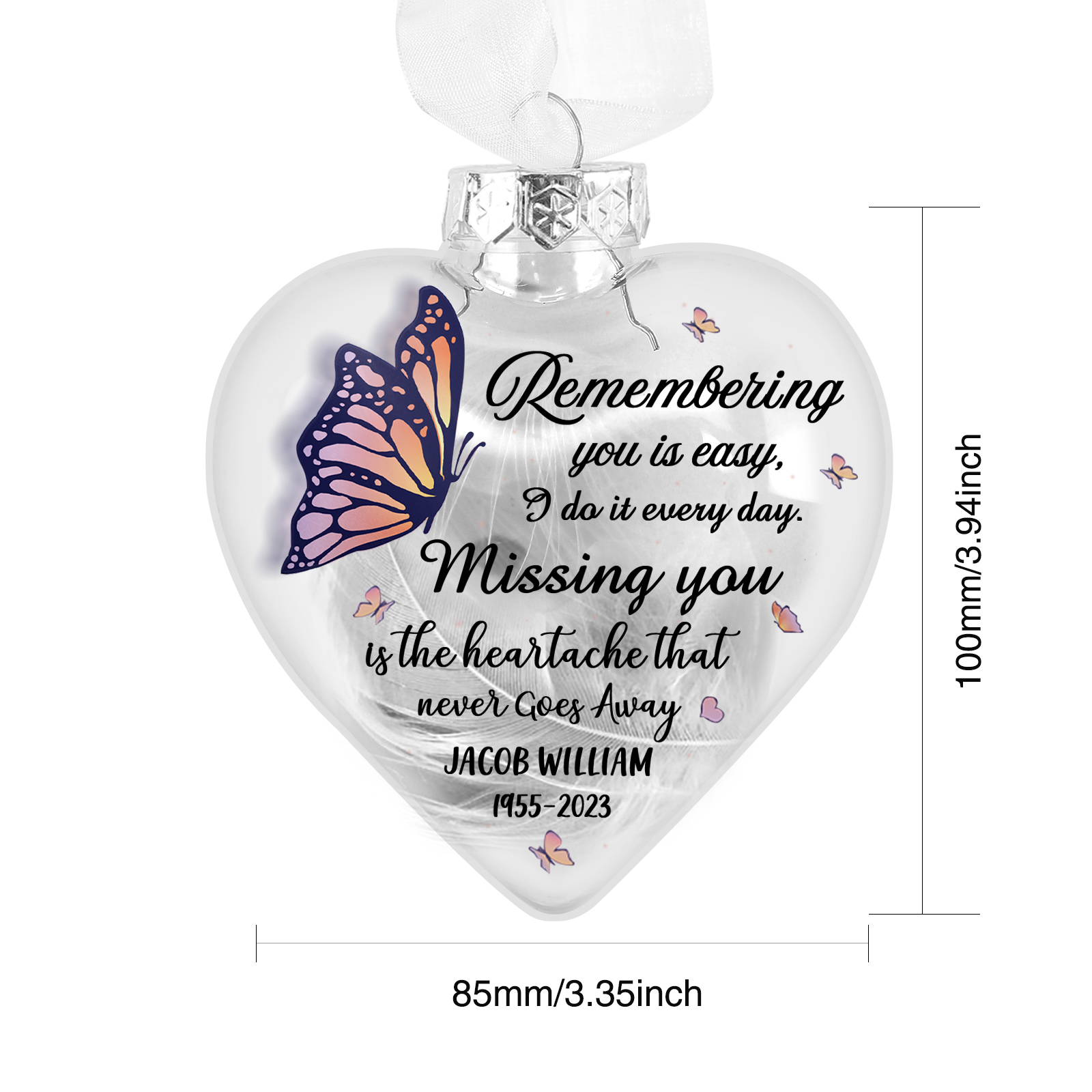 Memorial Ball Feather Ornaments Custom Name & Date Heart Christmas Hanging Ornament - Missing You Is The Heartache That Never Goes Away