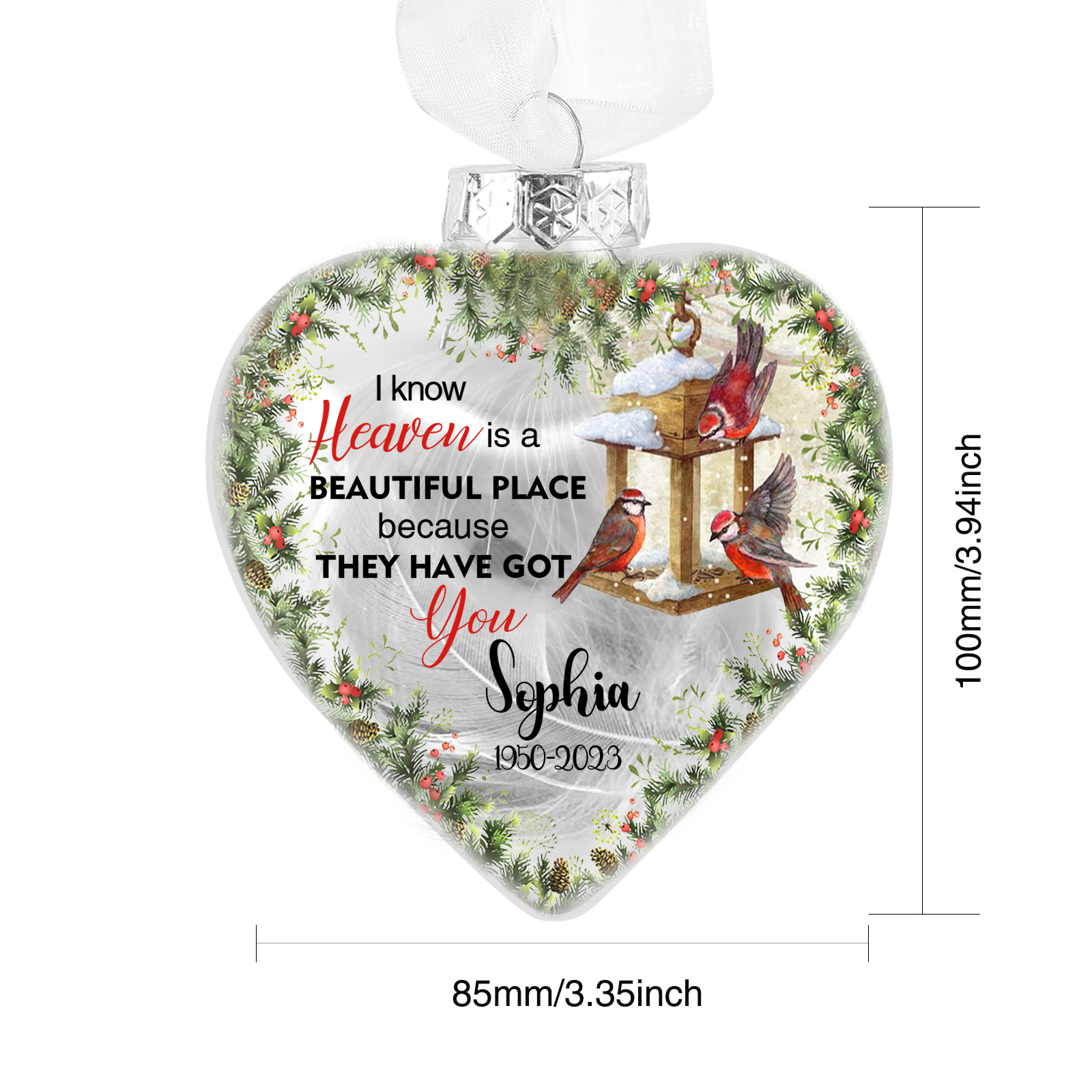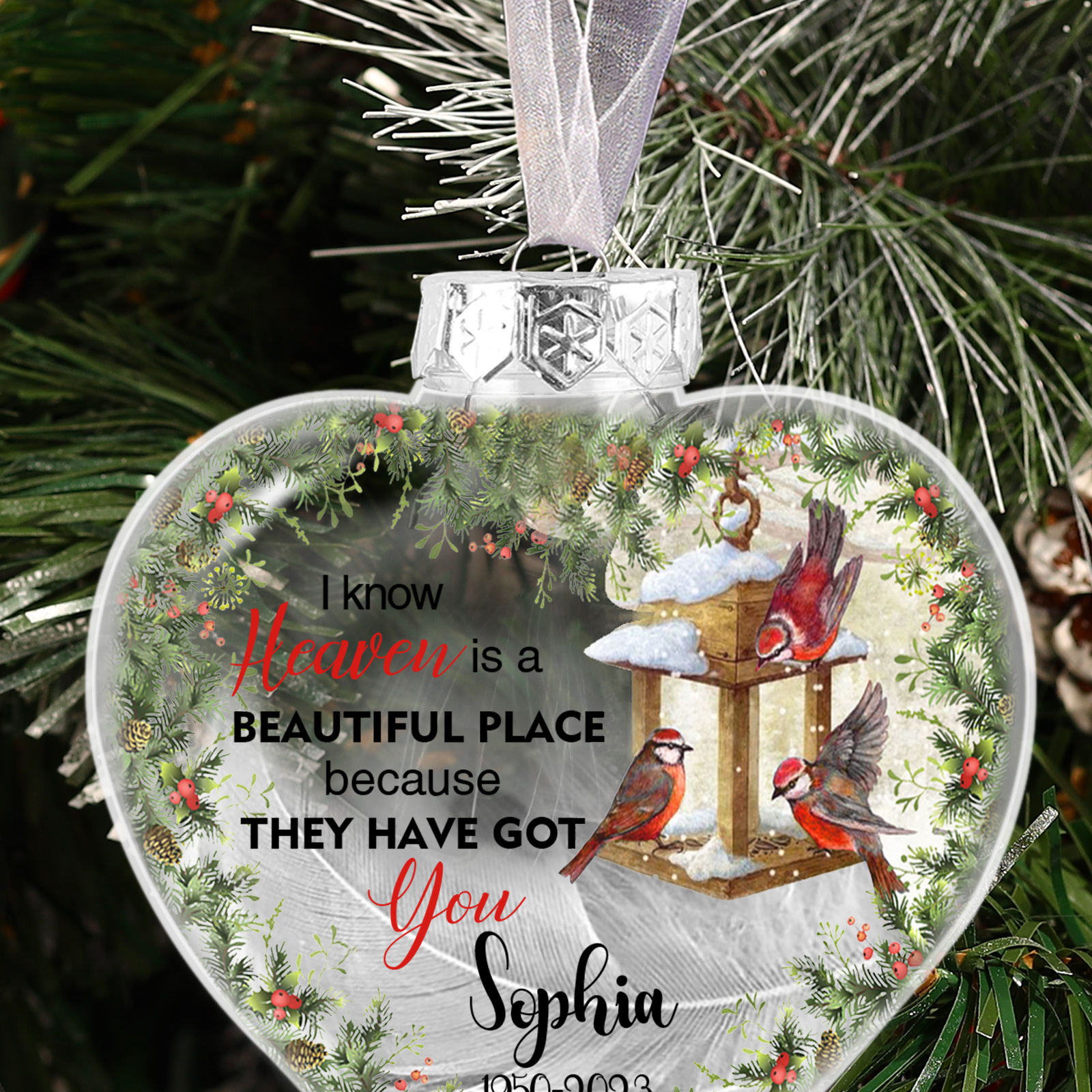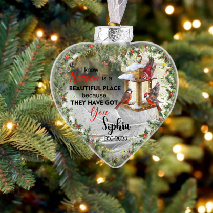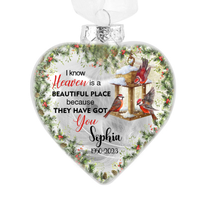Memorial Ball Feather Ornaments Custom Photo & Name Heart Christmas Hanging Ornament - I Know Heaven Is A Beautiful Place Because They Have Got You