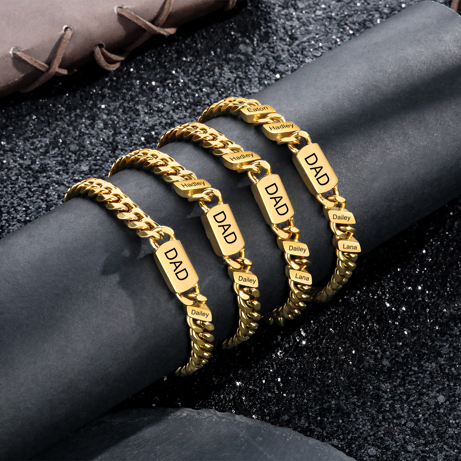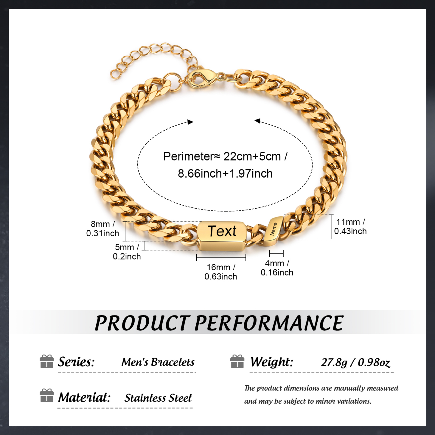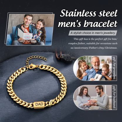 Keywords: personalised men’s bracelet, custom name bracelet, engraved bracelet for him, gift for dad UK, Father’s Day gift, gold curb chain bracelet, stainless‑steel jewellery, sentimental men’s gift, adjustable name bracelet