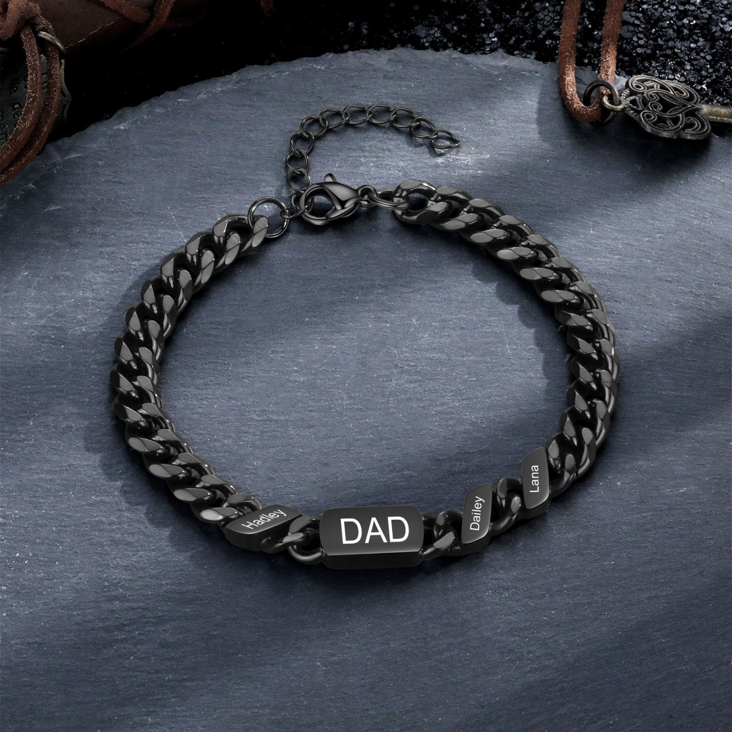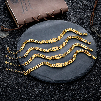 Give a heartwarming and practical gift with this personalized men’s bracelet, thoughtfully designed for dads, grandads, husbands or any special man in your life. Customise the centre block (e.g., DAD) and add up to 3 name beads to keep loved ones close, making this gold‑tone curb chain both a daily essential and a keepsake.