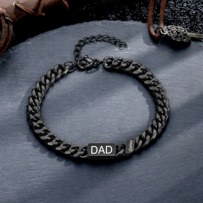 Men's Personalized Gold/Black Cuban Link Dad Bracelet