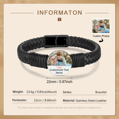 Mens Leather Bracelet Custom Photo Bracelet for Him