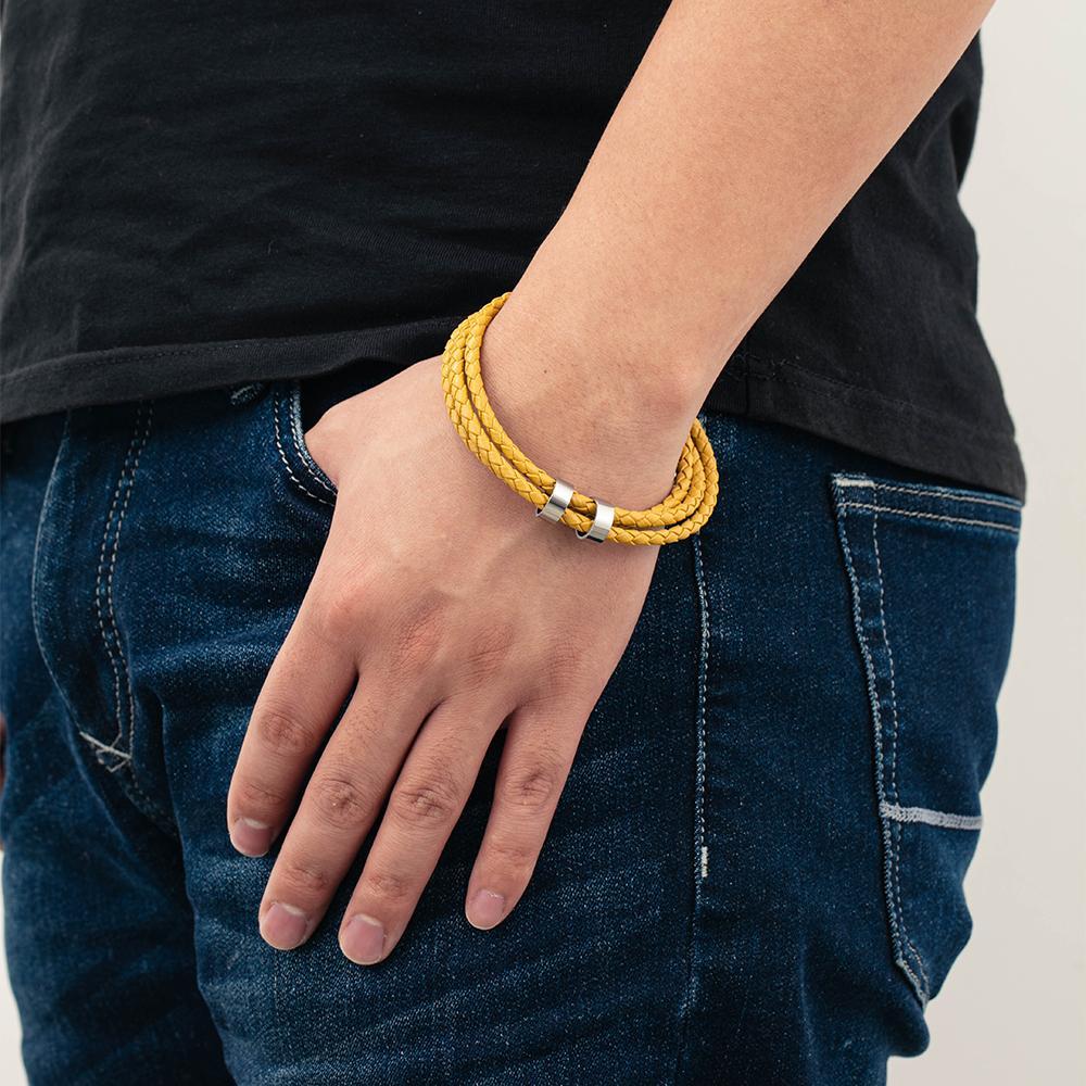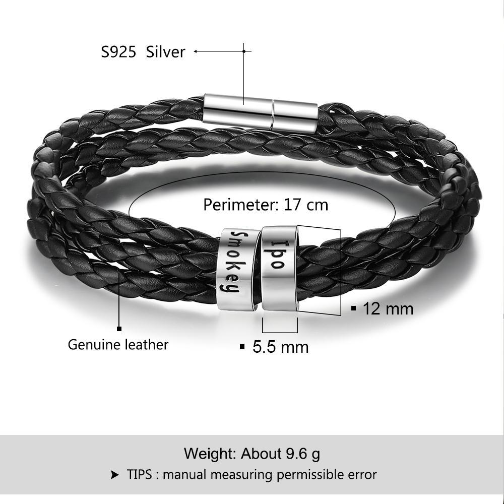 Express your strength and love with this personalized braided bracelet, especially to your dad, or husband. This men's bracelet can be engraved with all his children's names and gives him companionship wherever he goes. It is a meaningful gift for men, dads, husbands, boyfriends, brothers, uncles, best friends, or a special gift for yourself and for all occasions.
