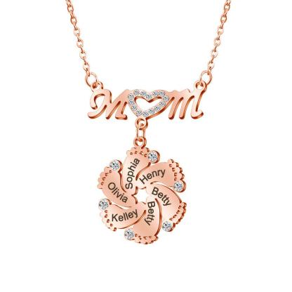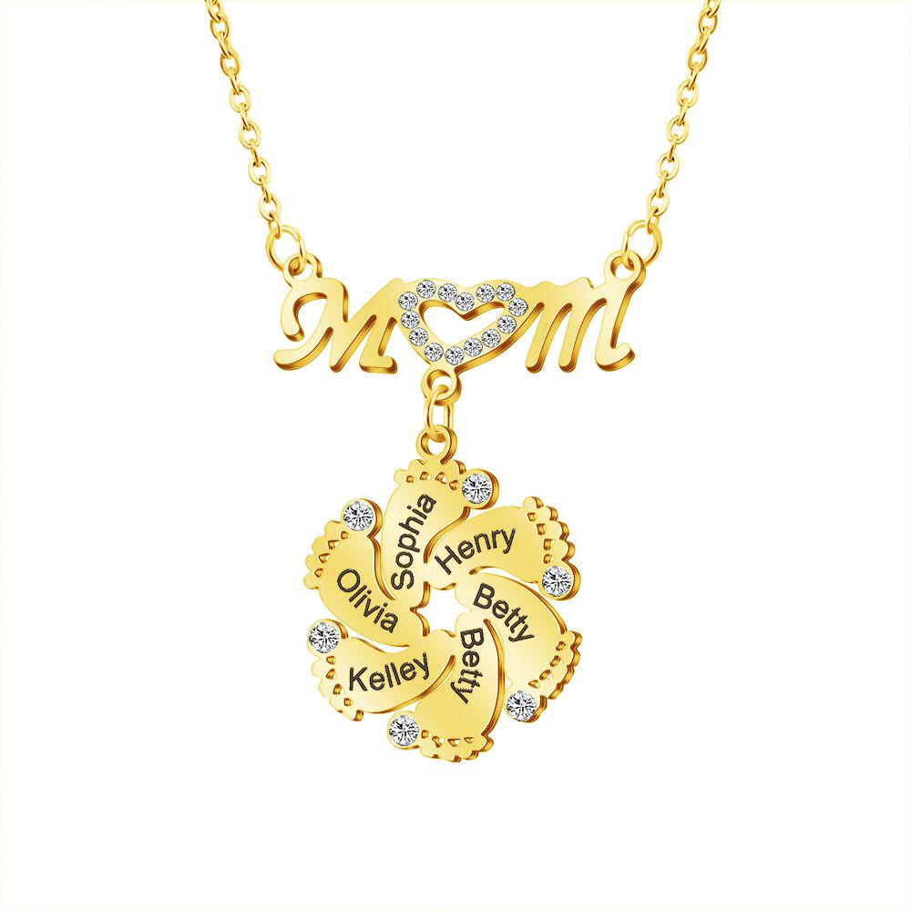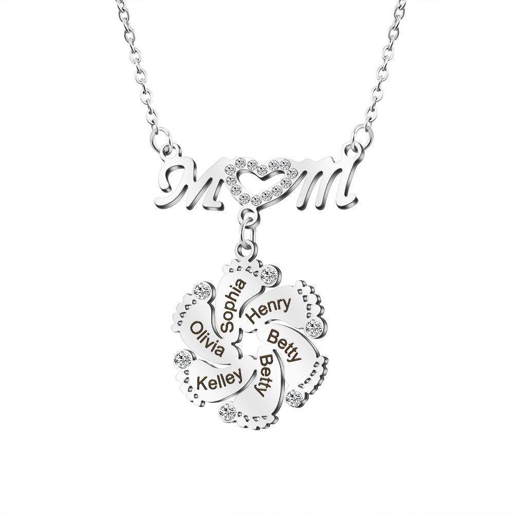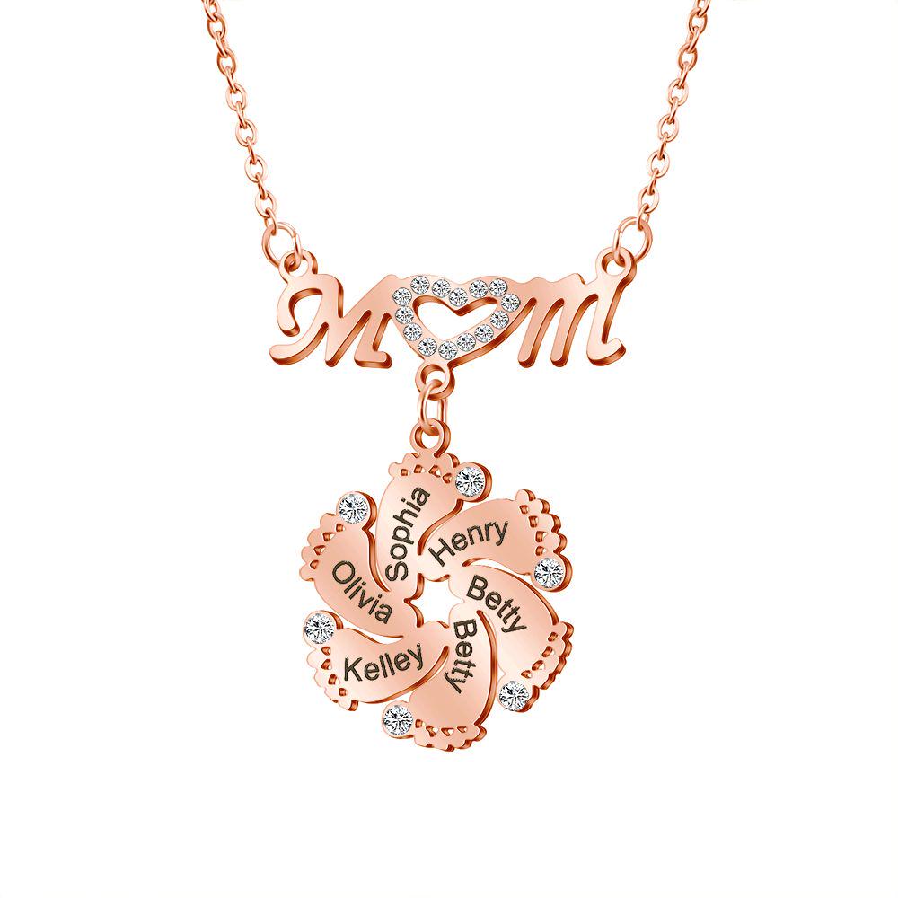 Mom Necklace Customized Baby Feet Necklace Engraving 6 Names Gifts for Her