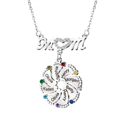 Mom Necklace Customized Baby Feet Necklace with Birthstones Engraving 8 Names Gifts for Her