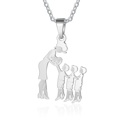 Mother and 3 Daughter/Son Necklace, Silhouette Necklace Love Necklace for Mother/Daughter