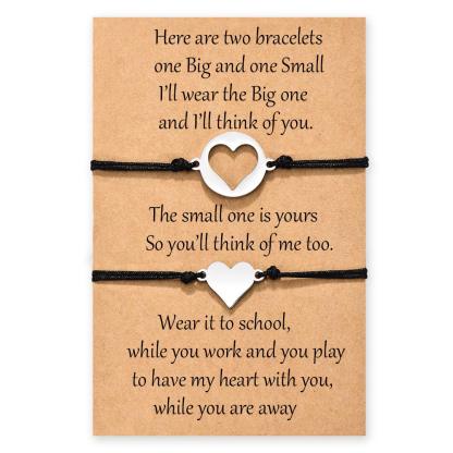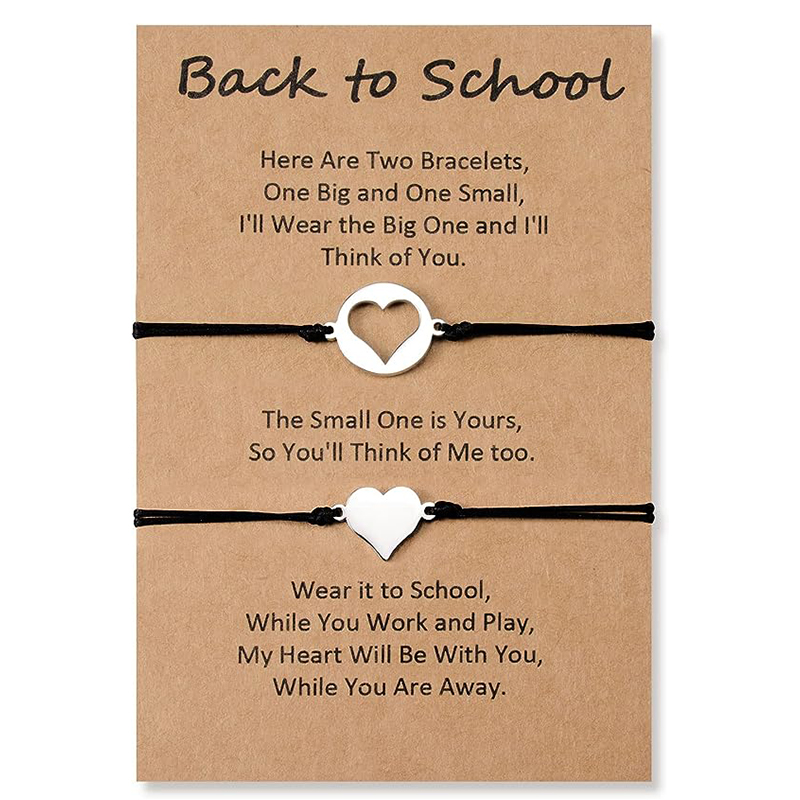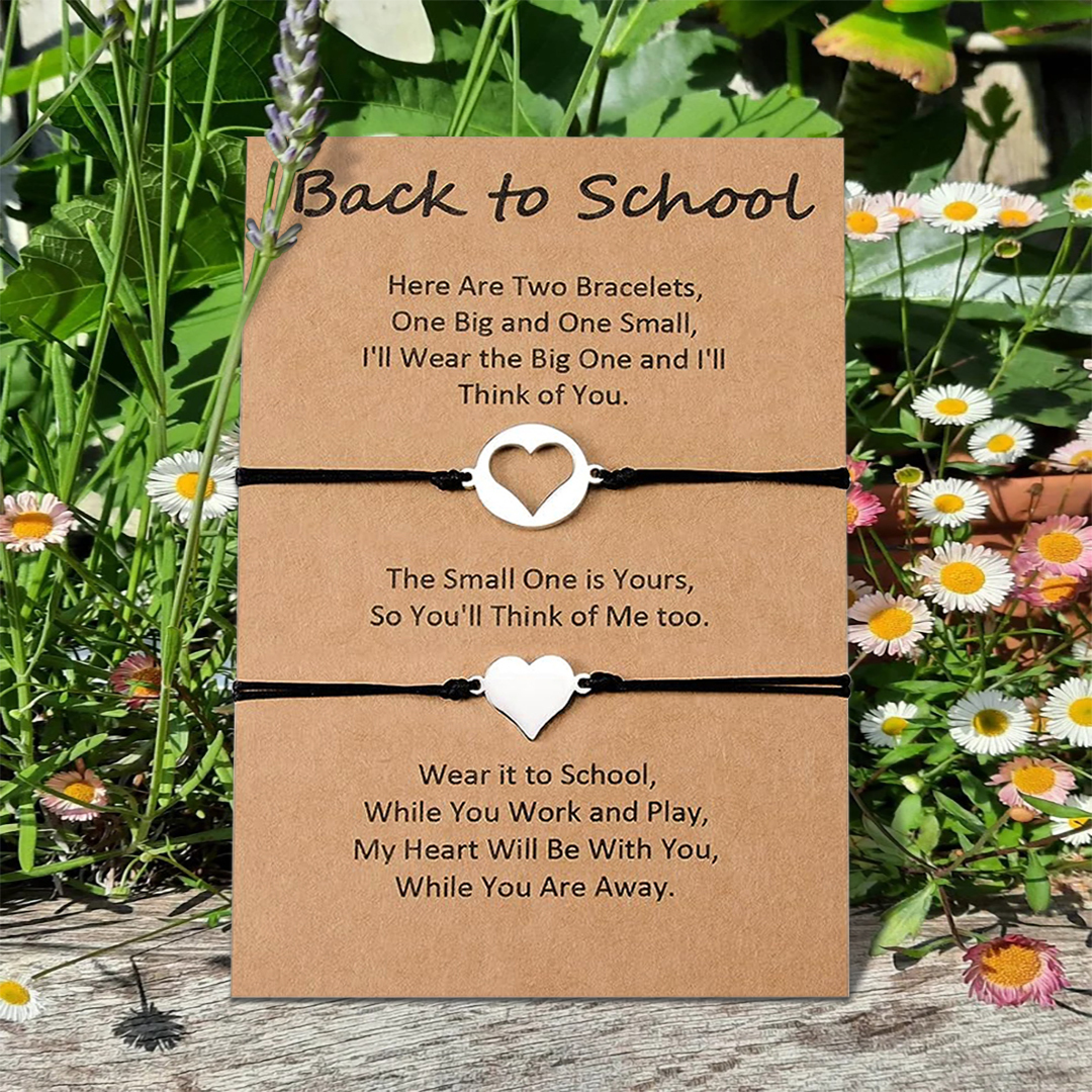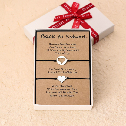 Mother-Daughter Love Heart Bracelet Set with Warm Back-to-School Card, Back To School Gift With Gift Card Set For Kids