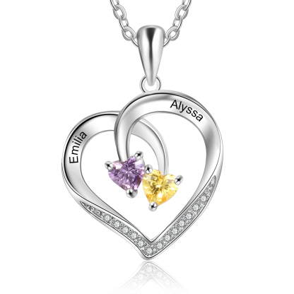 Mother's Day Gift Personalized Heart Necklace With Names Custom 2 Birthstones Gifts For Women
