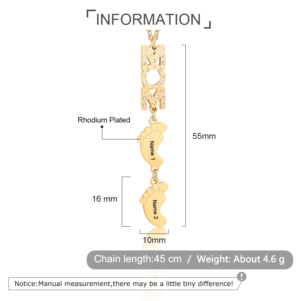 Mother's Day Gifts Personalized Baby Feet Mother Necklace Engraved 2 Names Necklace Gifts For Mom