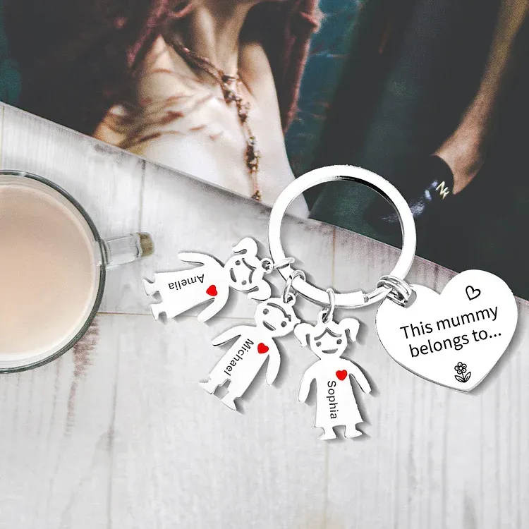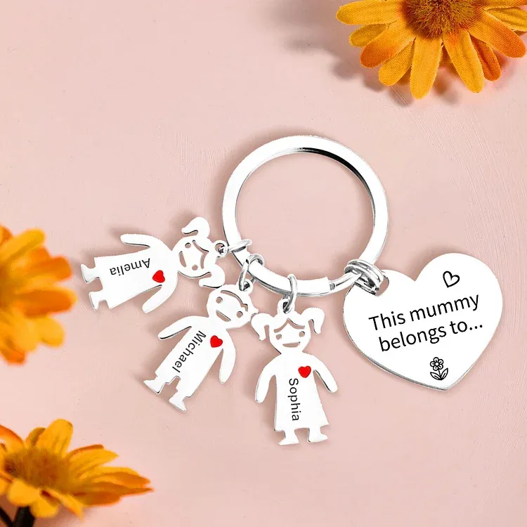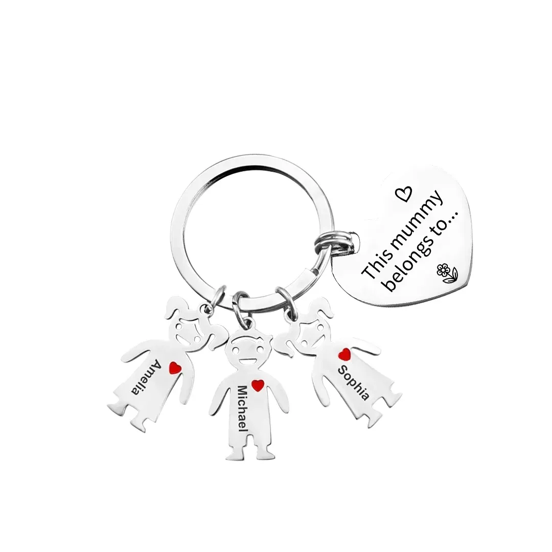 Mother's Day Gifts Personalized Heart Keychain With 3 Kid Charms "This Mommy/Mummy Belongs to" For Her