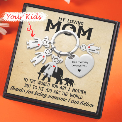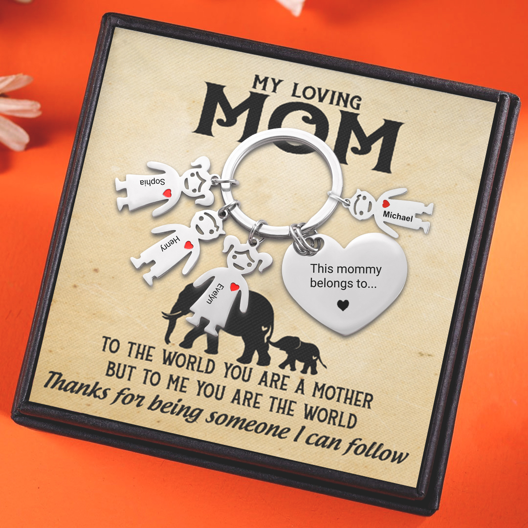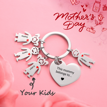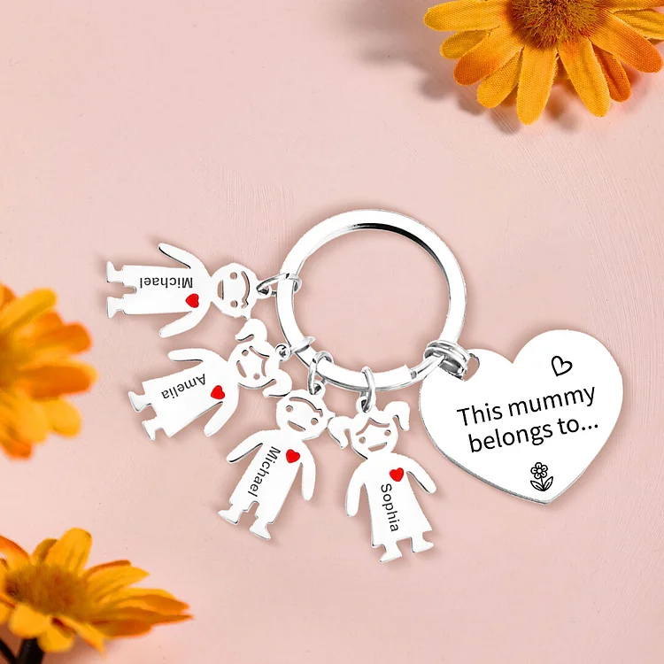 Mother's Day Gifts Personalized Heart Keychain With 4 Kid Charms "This Mommy/Mummy Belongs to" For Her