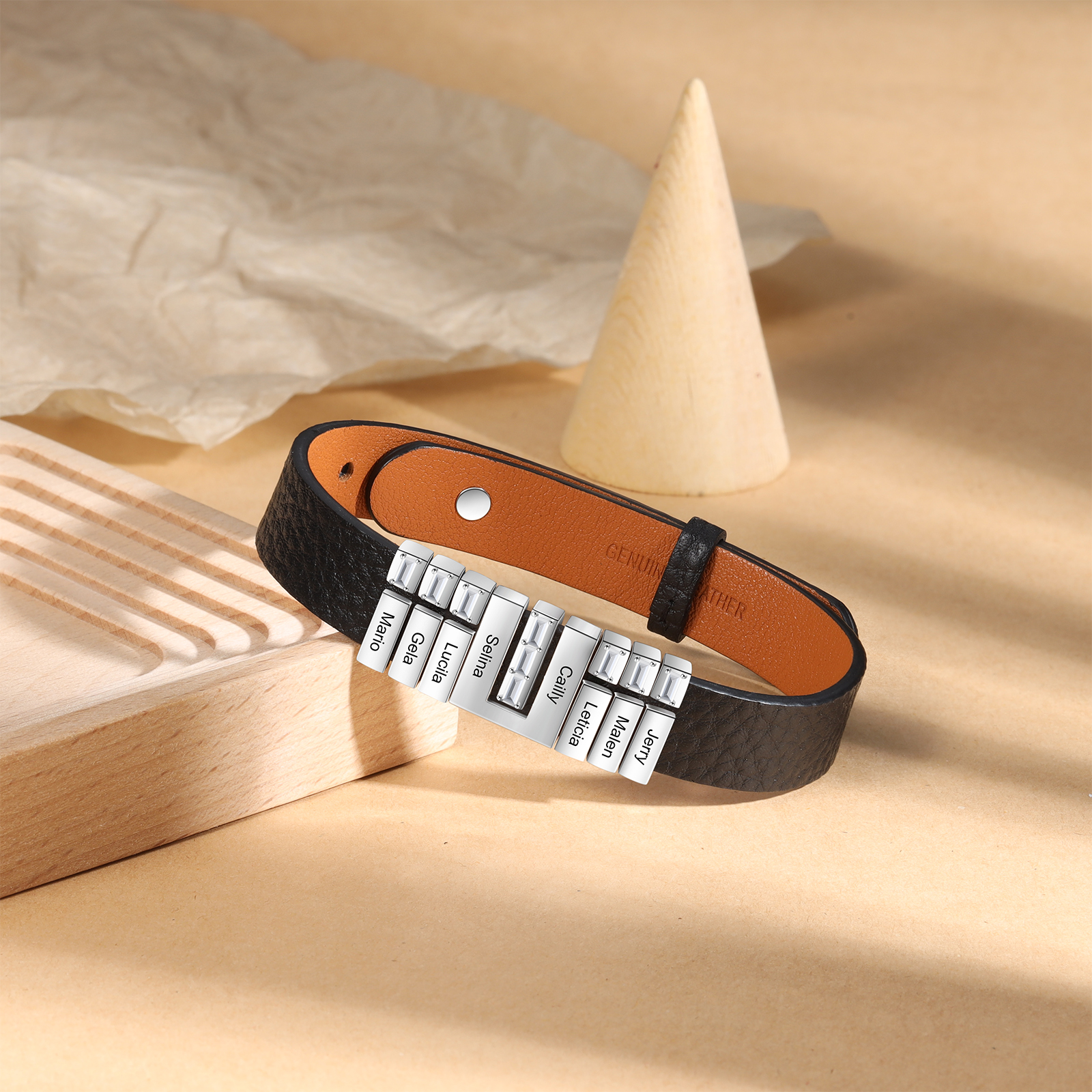 Mother's Day Gifts Personalized Leather Bracelet With 8 Names Gifts For Women
