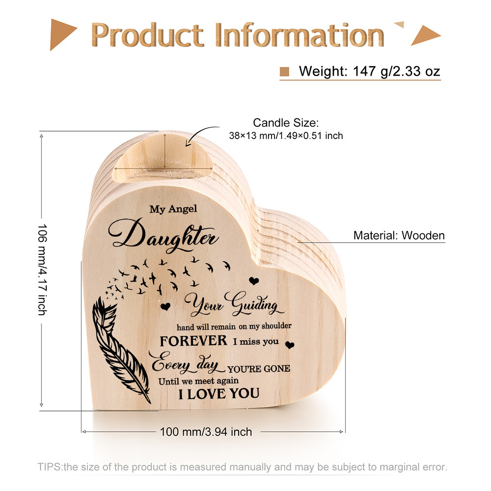 My Angel Daughter Wooden Heart Candle Holder Memorial Candlesticks "Until we meet again"
