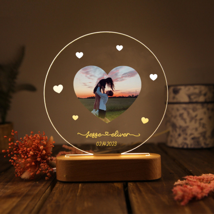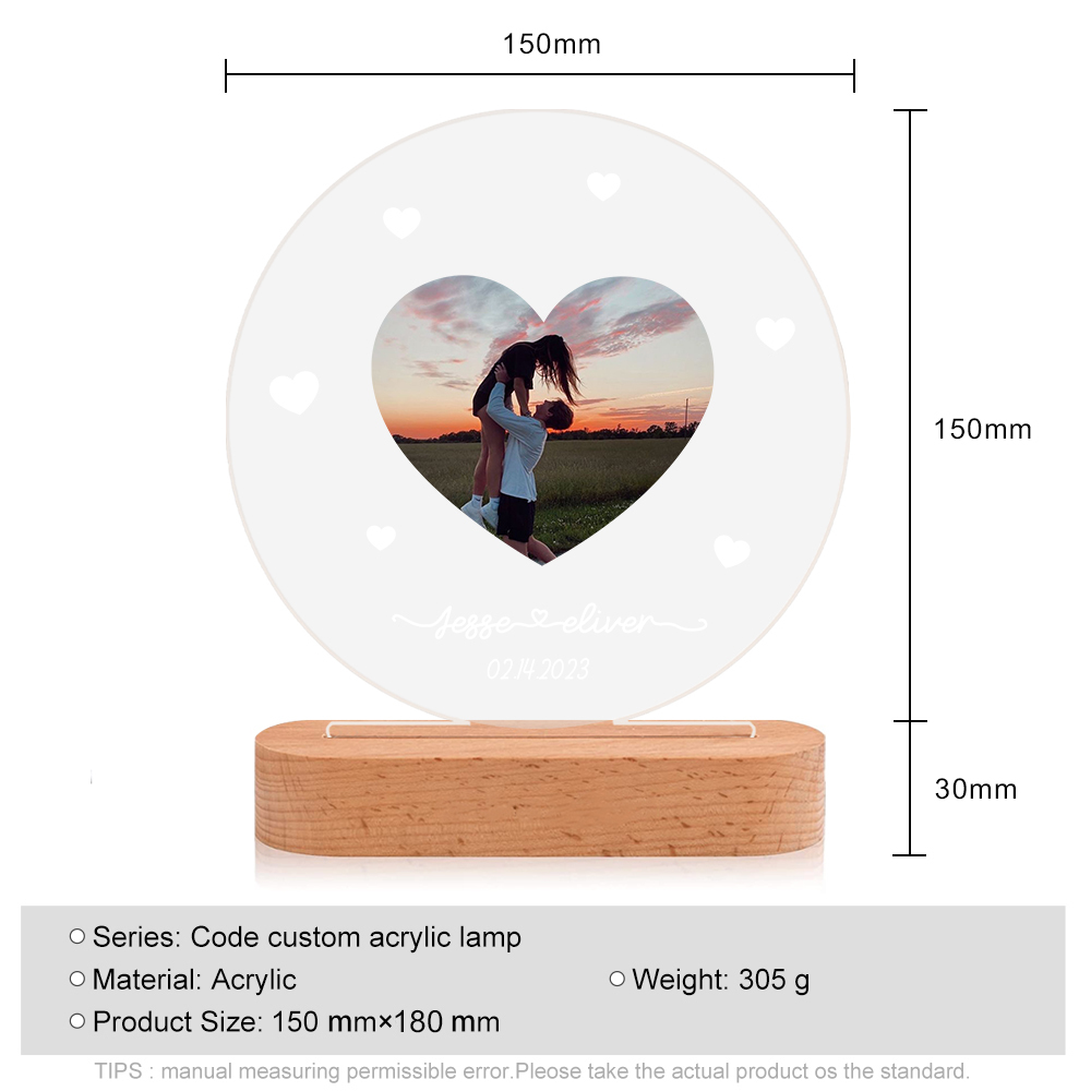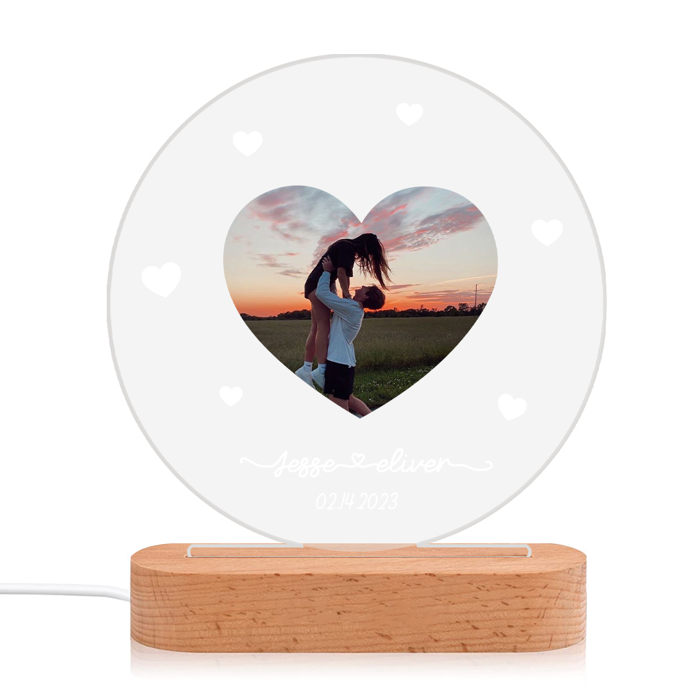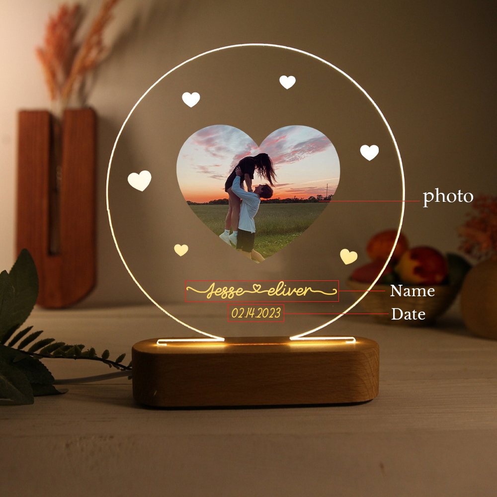 Name-Personalized Couple Acrylic Night Light, Custom Photo And Date Lamp Christmas Gifts