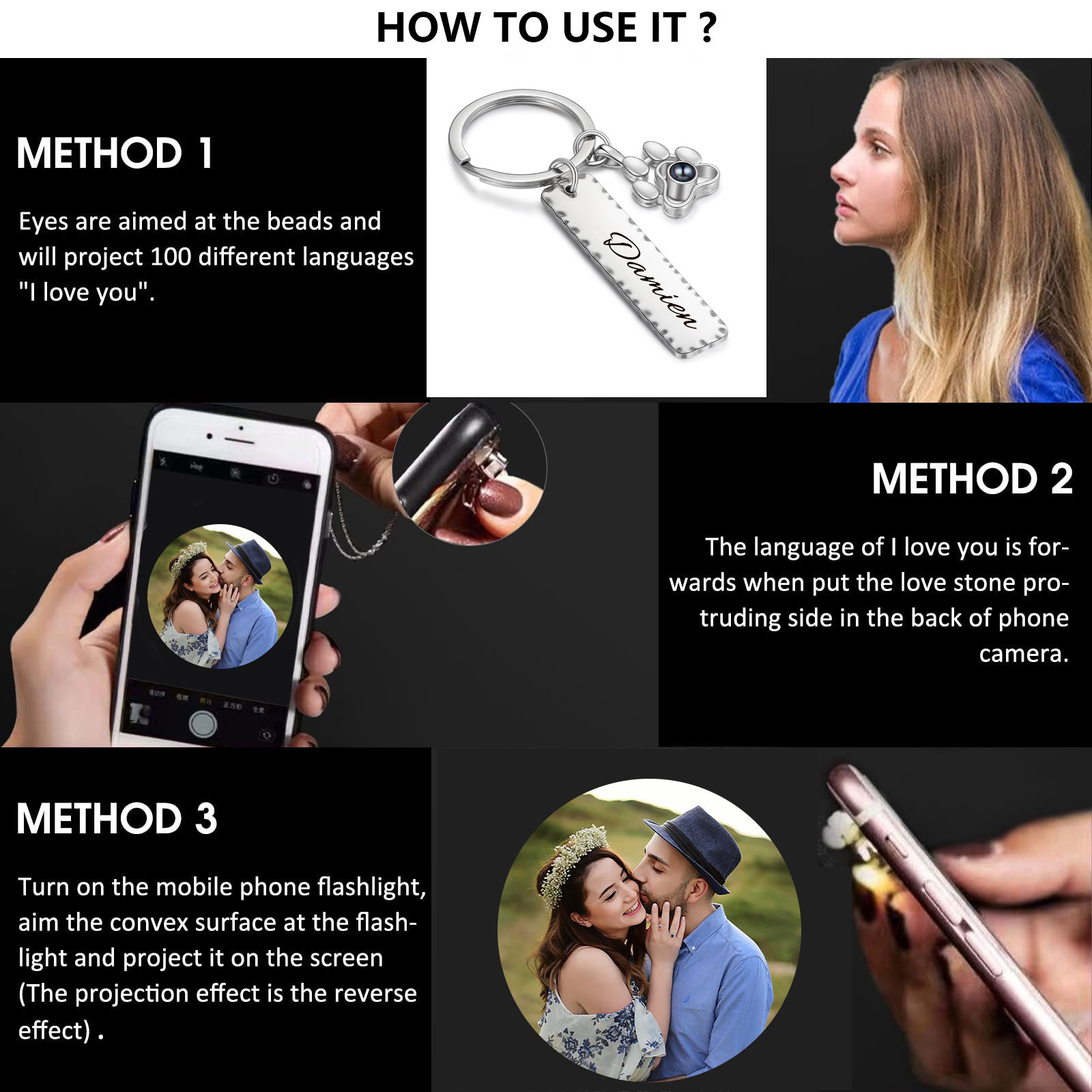 Name Personalized Keychain Projection Gift Custom Photo Commemorate Keychain Gift