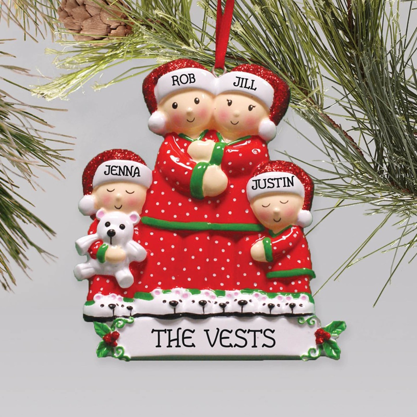 Pajamas Christmas Ornament Custom 2 Names Hanging Ornament Gifts For Family