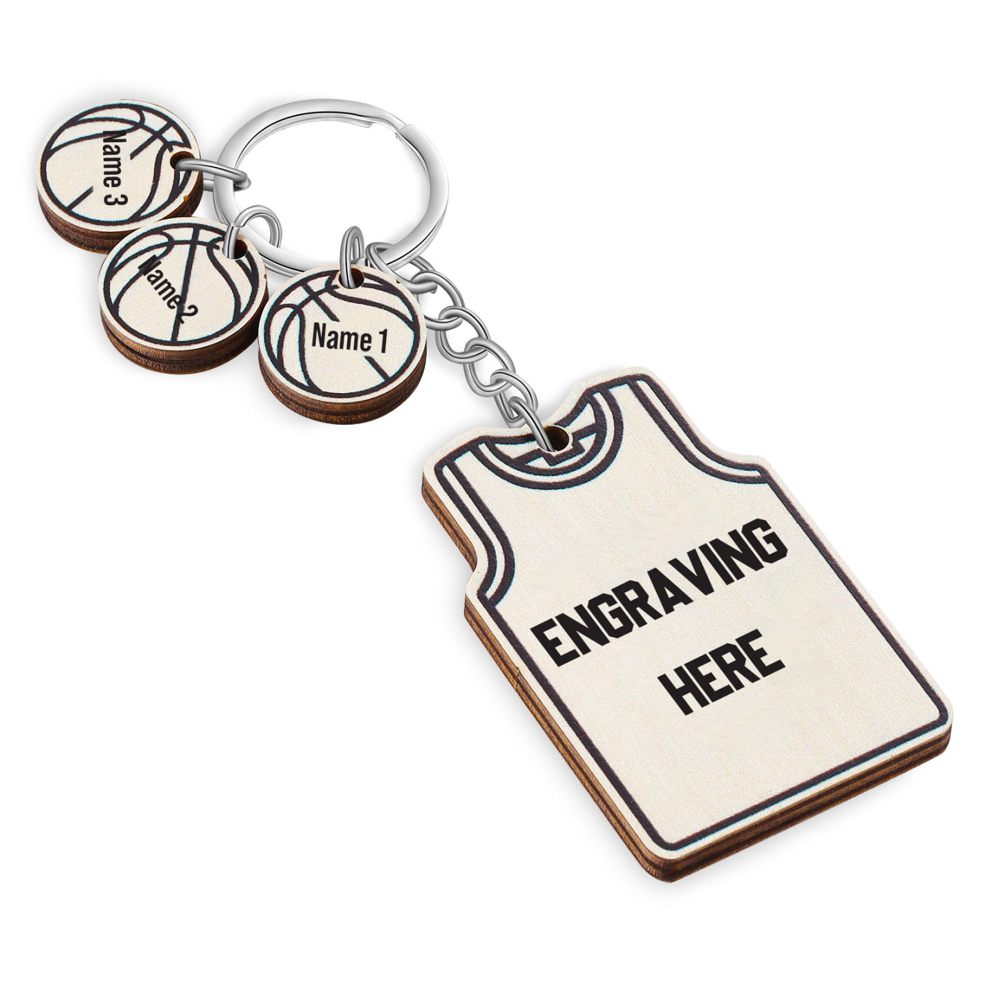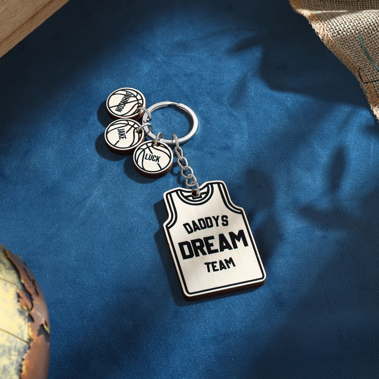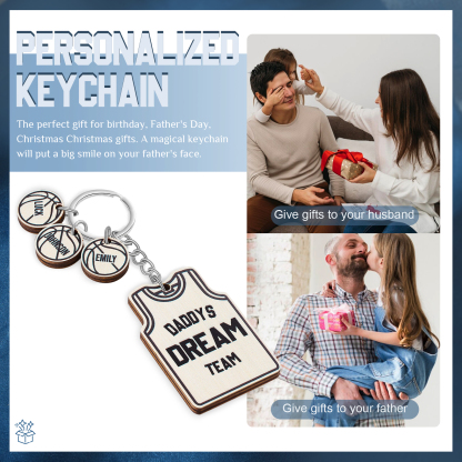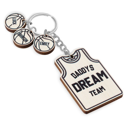 Personalised Text and 3 Names Wooden Basketball Keychain For Dad