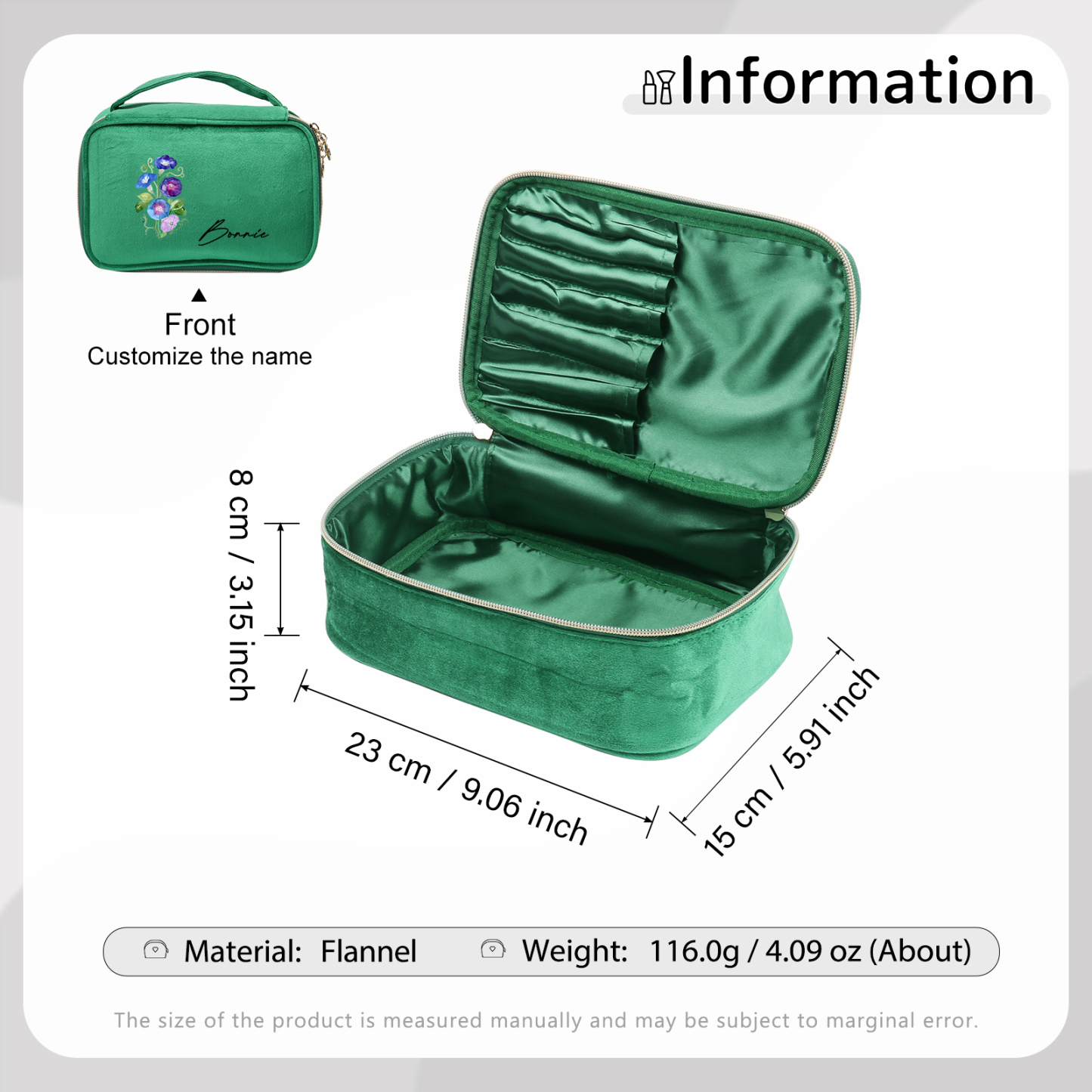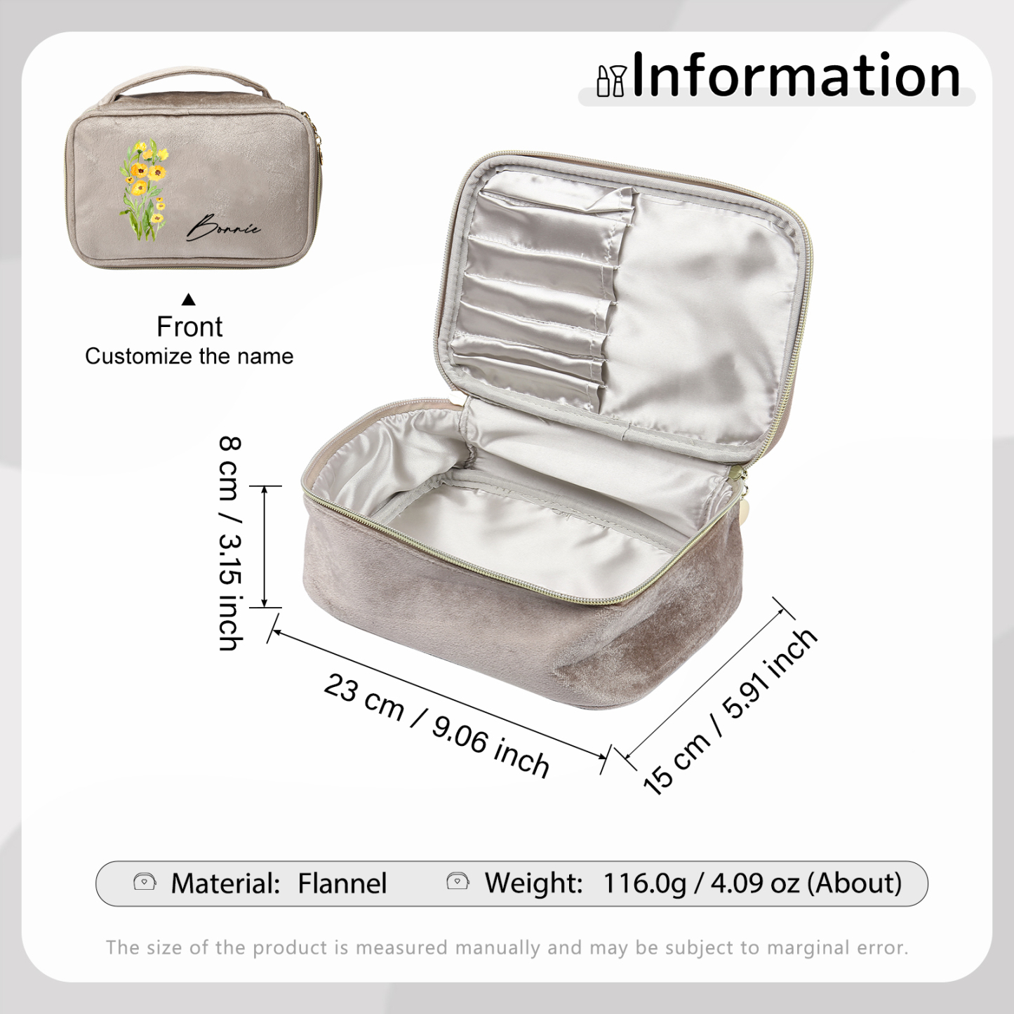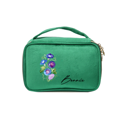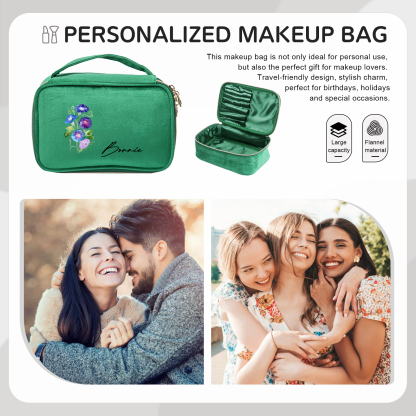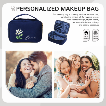 Personalized 1 Name & 1 Birthflower Cosmetic Bag, Custom Nylon Storage Compartment Cosmetic Bag, Personalized Gift In Multiple Colors